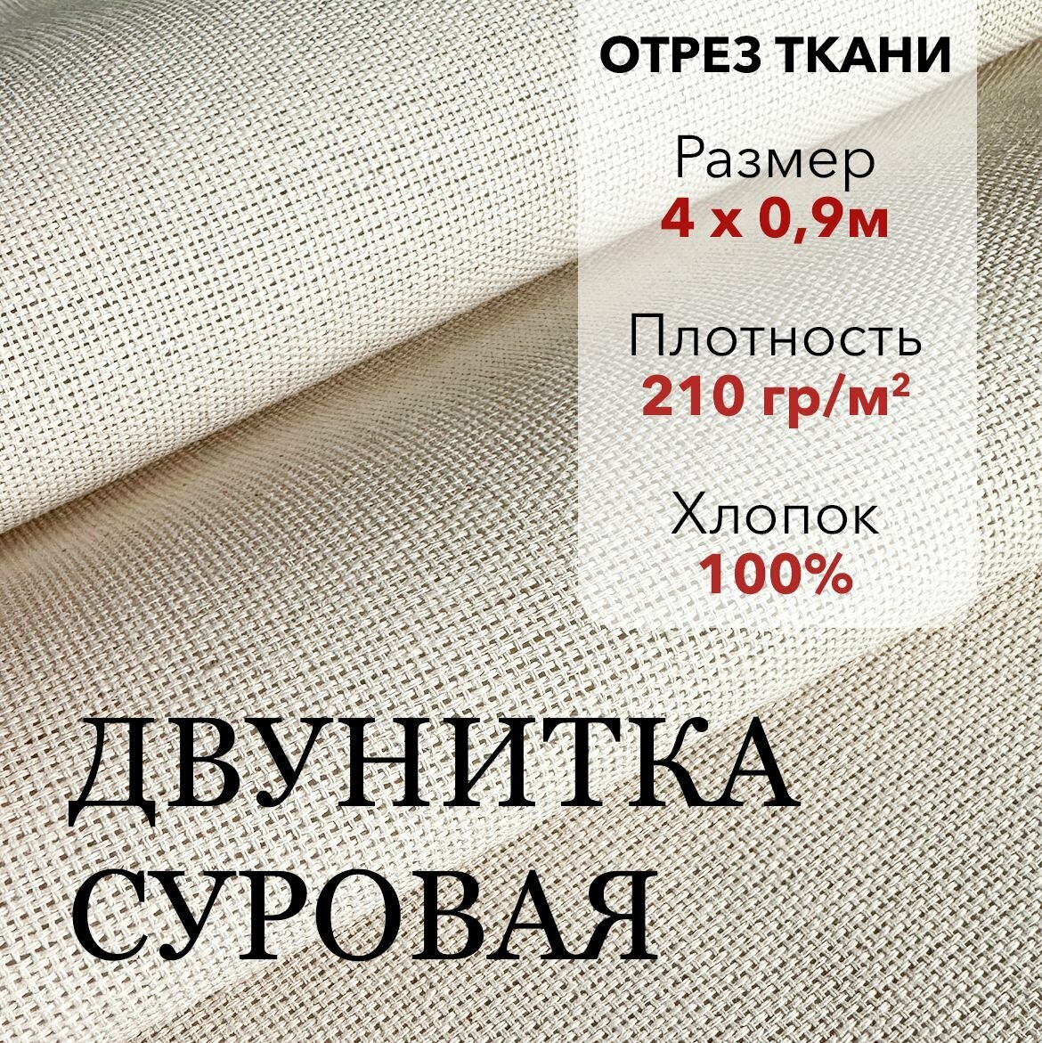 Ткань Двунитка Суровая, хлопок 100%, отрез ткани 1 м, ширина 90 см, плотность 210 г/м, Материал для шитья и рукоделия