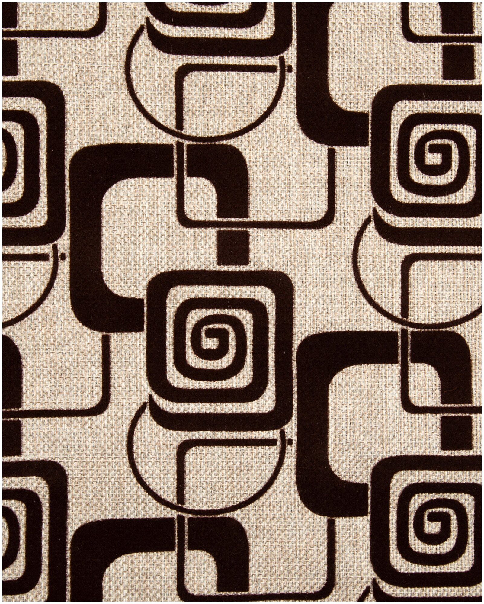 СохранитьТкань мебельная Рогожка Флок, цвет: коричневая геометрия на бежевом фоне (227-2), отрез - 1 м (Ткань для шитья, для мебели) интересное: