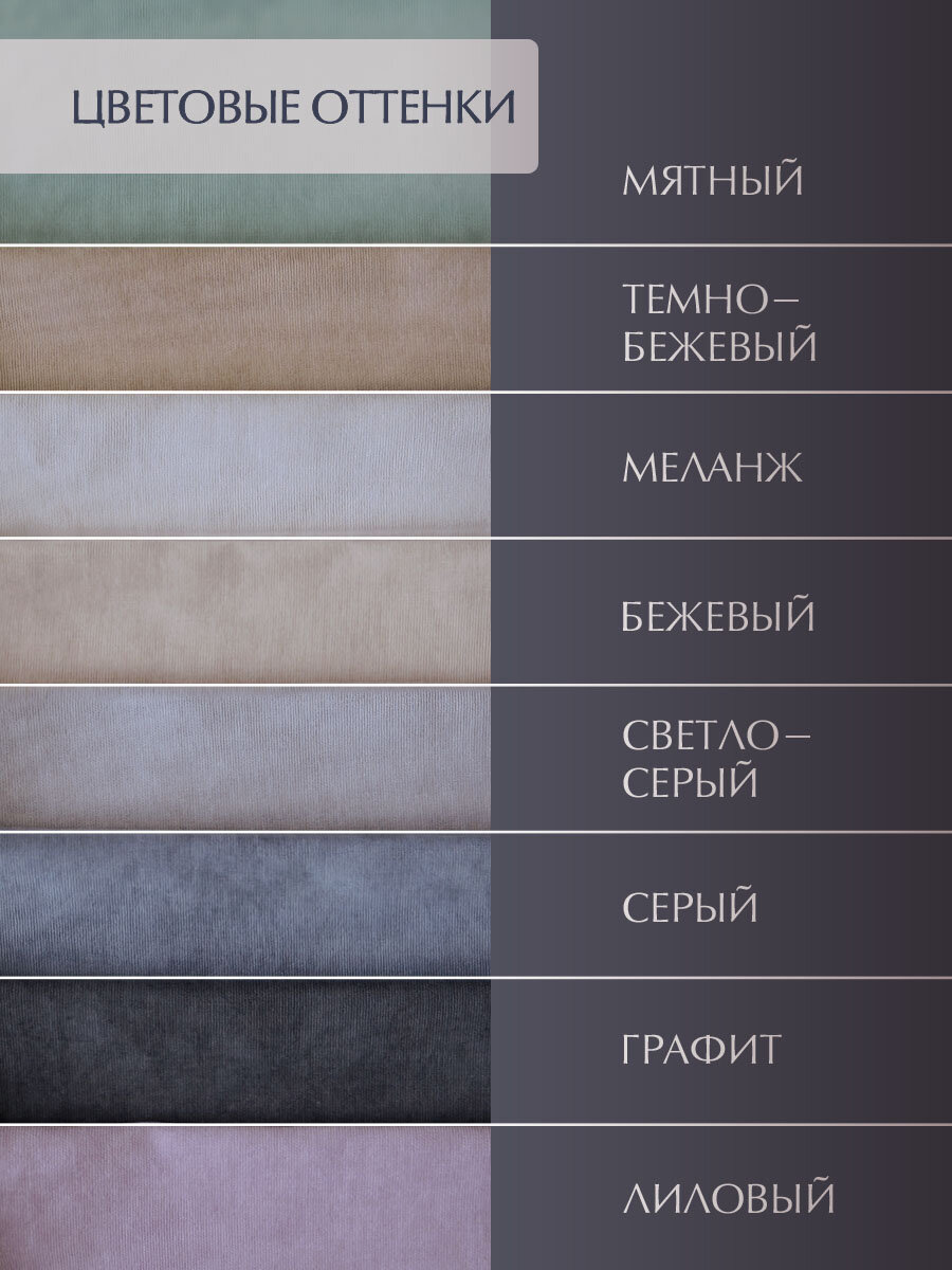 | Цвет товара | бежевый, графит, лиловый, меланж, светло-серый, серый |