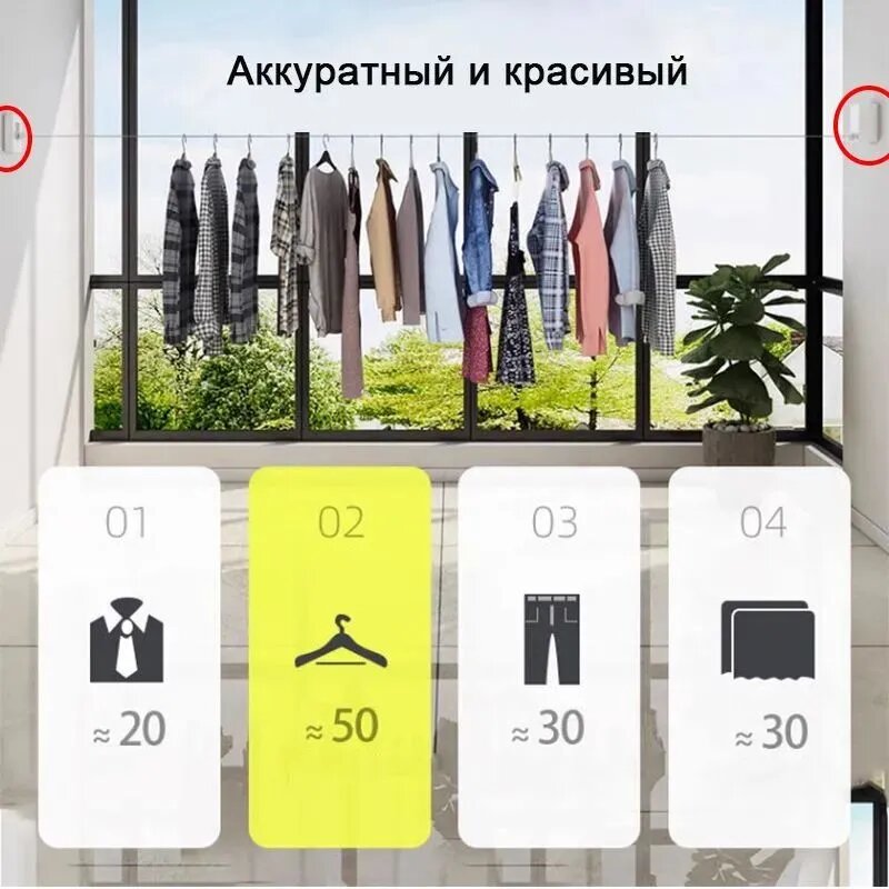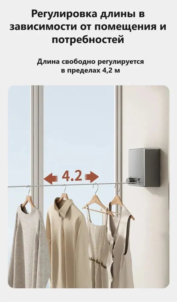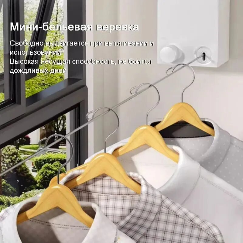Выдвижная бельевая веревка сушилка компактная Xiaomi Qia Dao Just Fit Retractable Clothesline White (D002) для белья интересное:
