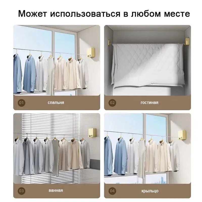 | Особенности | автоматическое сматывание / держатель для вешалок / регулировка длины |
