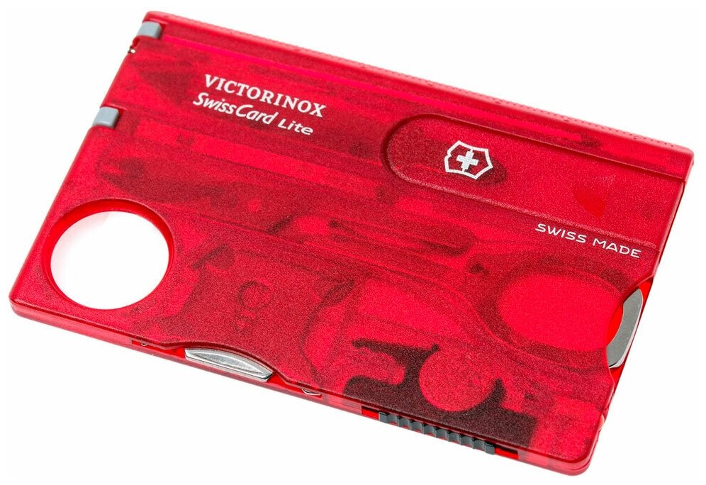 Мультиинструмент Victorinox Swiss Card Lite, 13 функций Полупрозрачный Красный