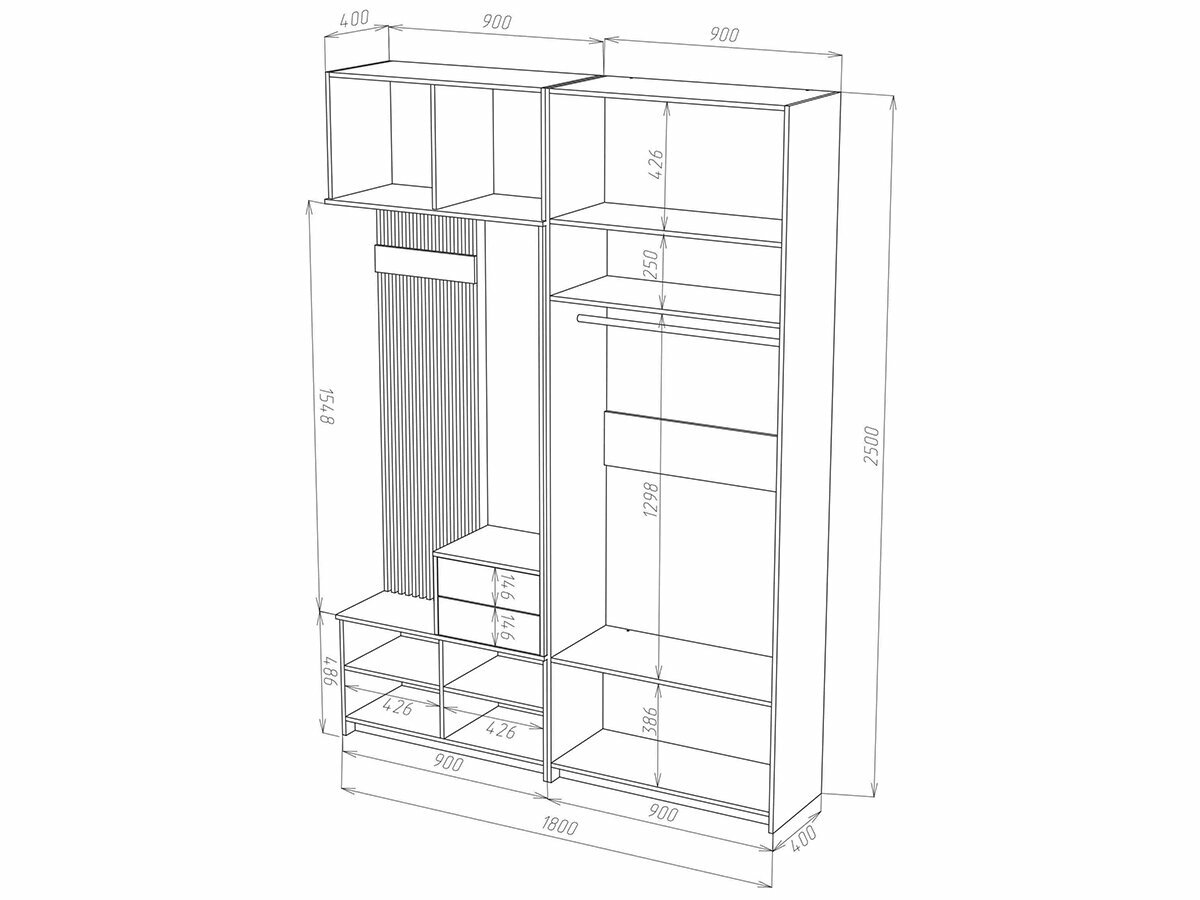 | Габариты | Глубина: 40 см; Ширина: 180 см; Высота: 240 см. |
