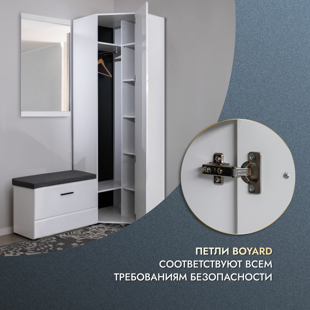 СохранитьПрихожая Йорк 142Х36х205 с угловым шкафом, тумбой и зеркалом мебель в прихожую белый глянец интересное: