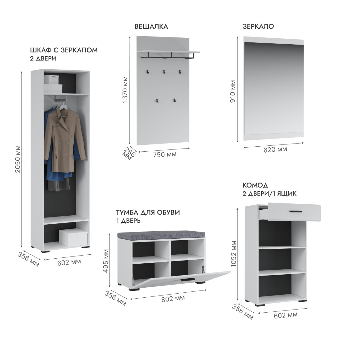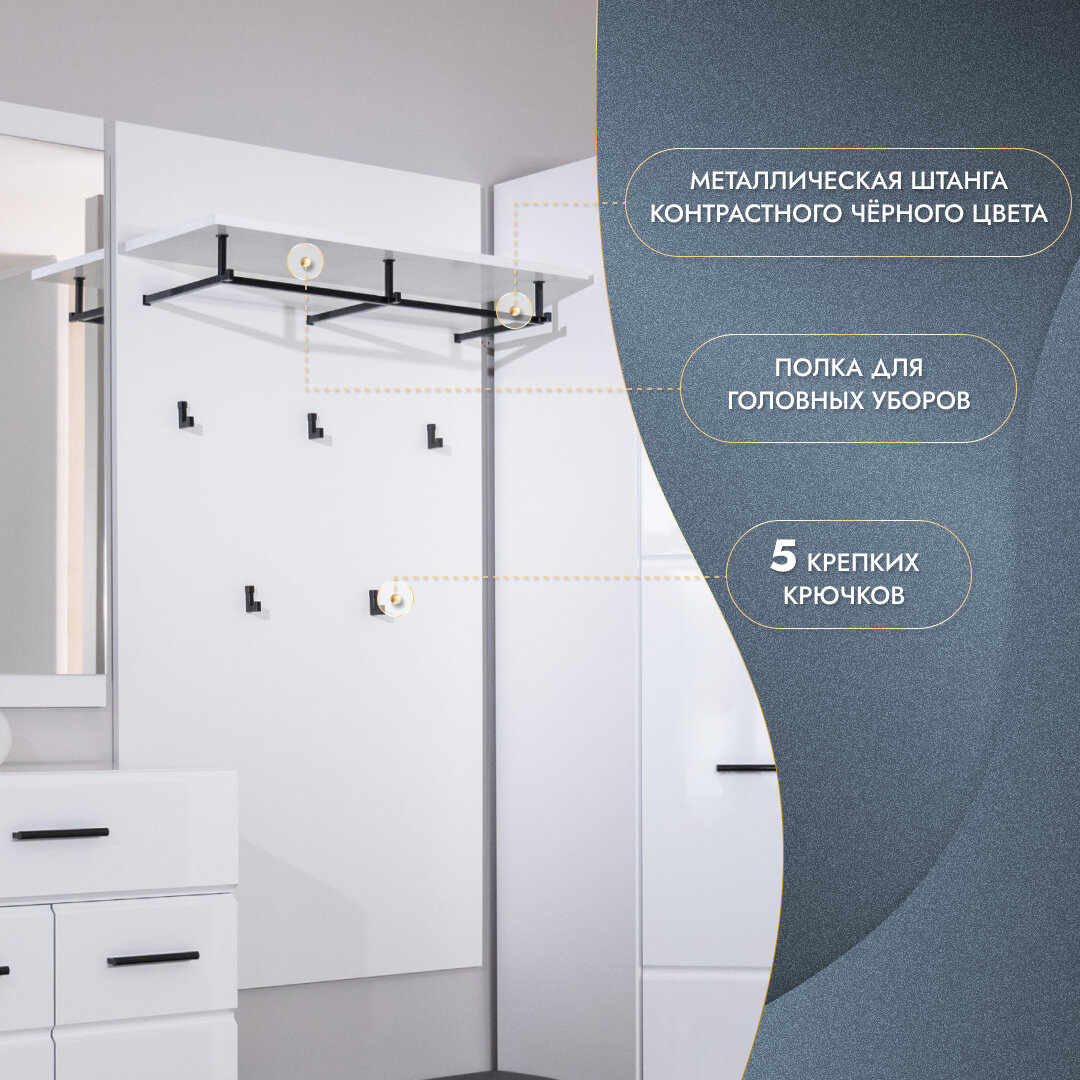 Прихожая Йорк прямая со шкафом зеркалом обувницей белый глянец ШГВ (200х35,6х205 см) интересное: