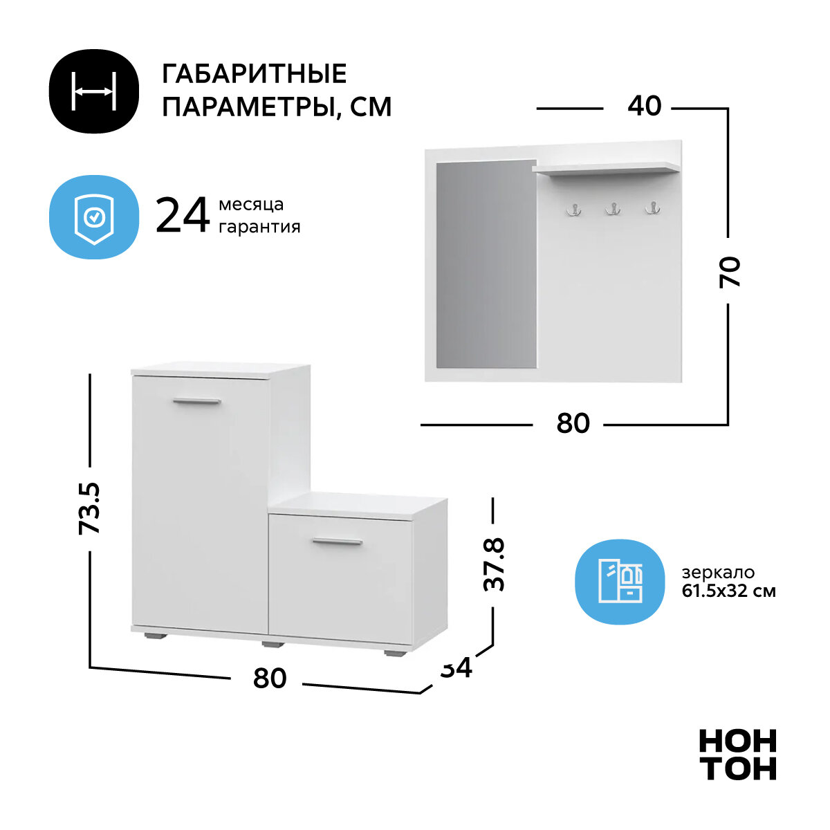 Прихожая Нонтон FUN белая 80x34x185 см