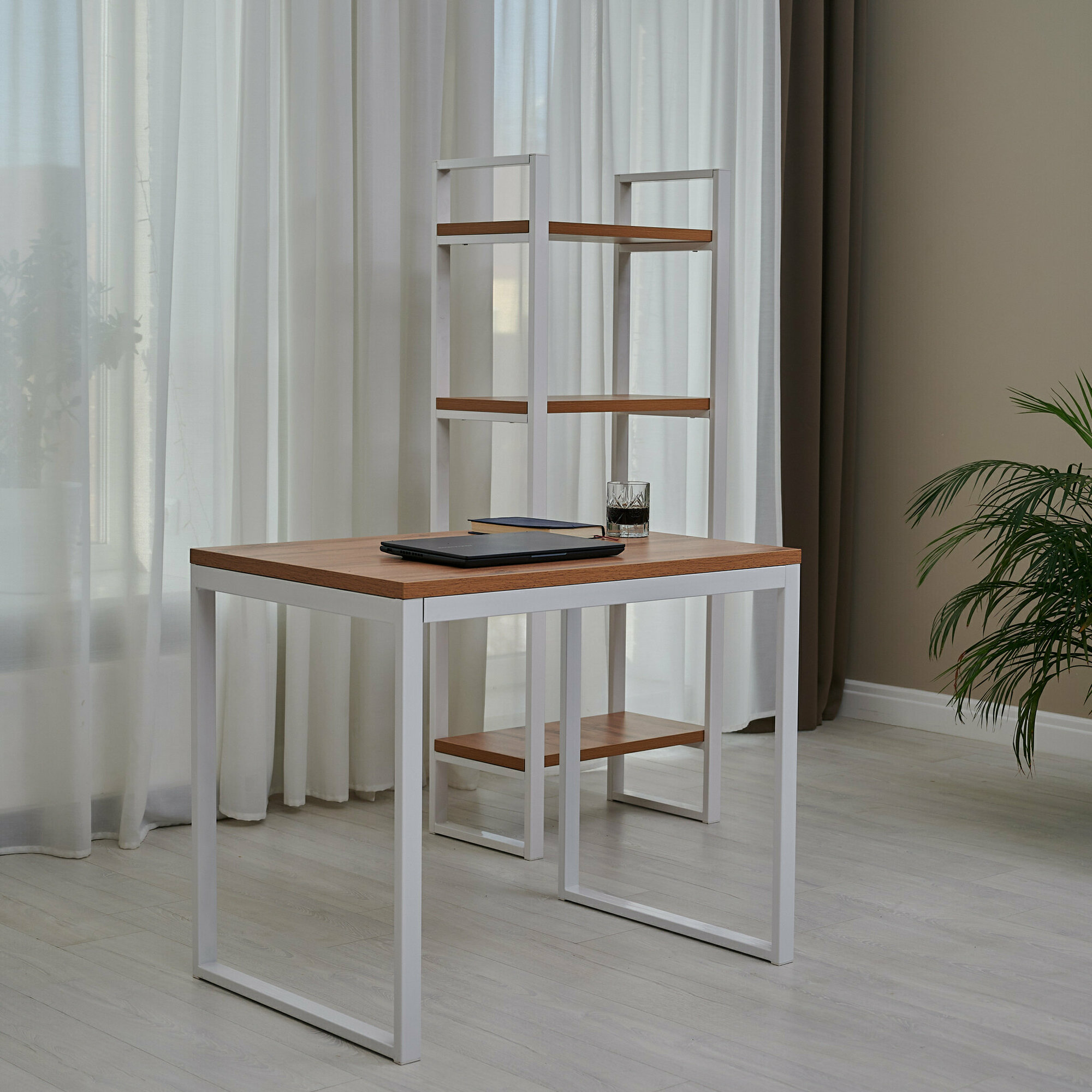 Стол письменный Лофт 90х60см Дуб Сонома, белые ножки