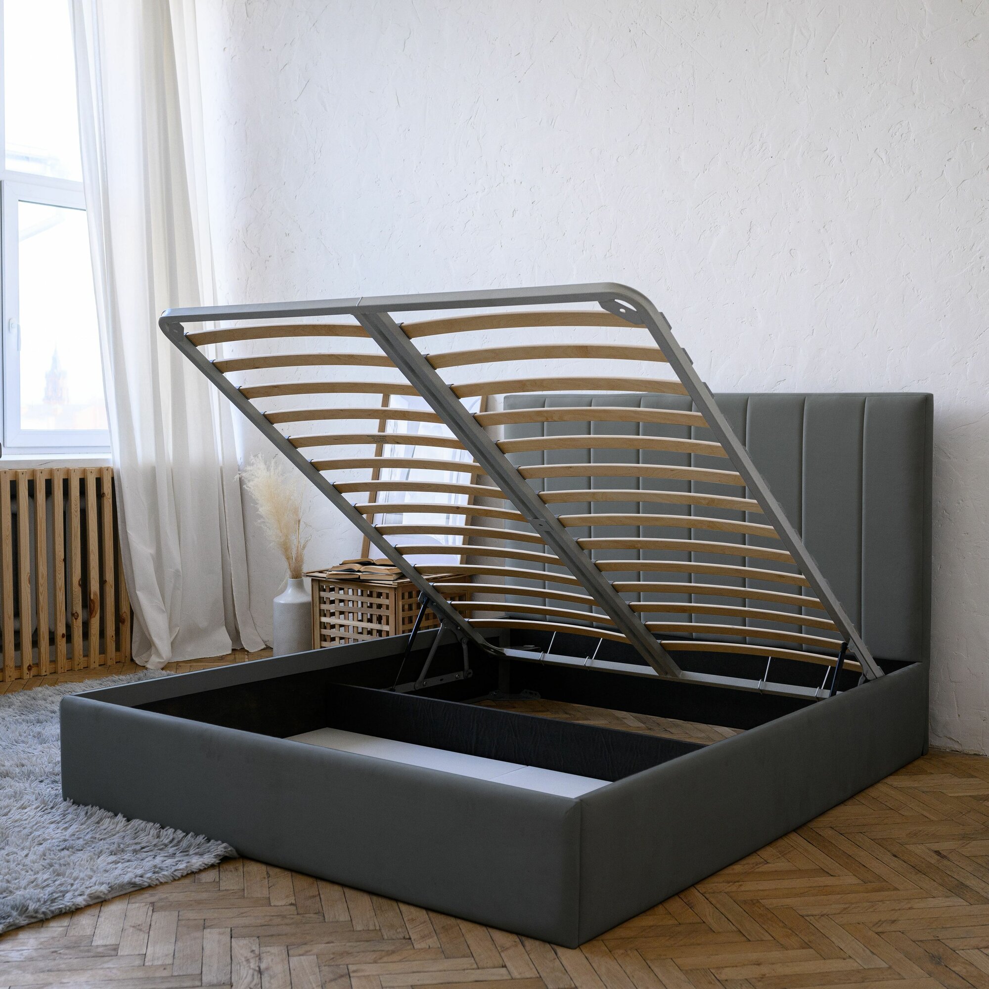 Кровать 160х200 c подъемным механизмом, матрасом и бельевым ящиком Маргарида темно-серый
