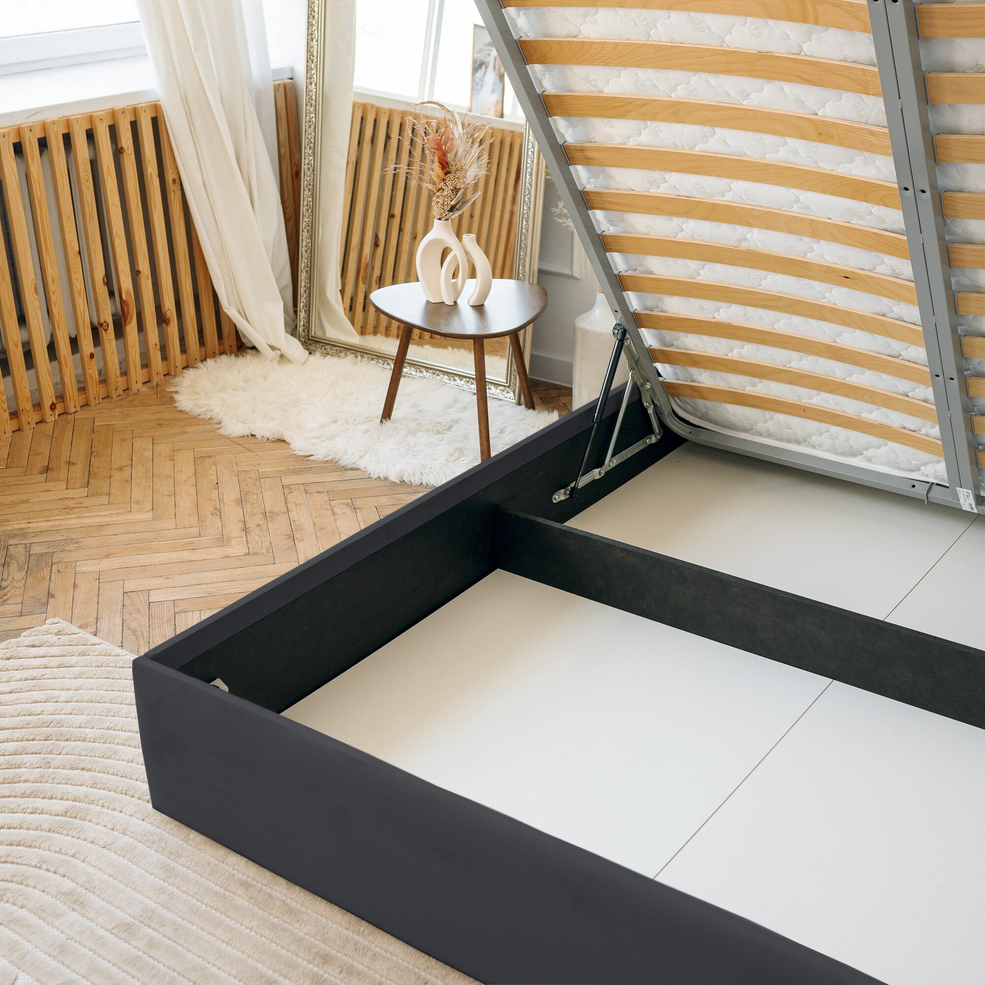Кровать 140х200 c подъемным механизмом, матрасом и бельевым ящиком Маргарида темно-серый