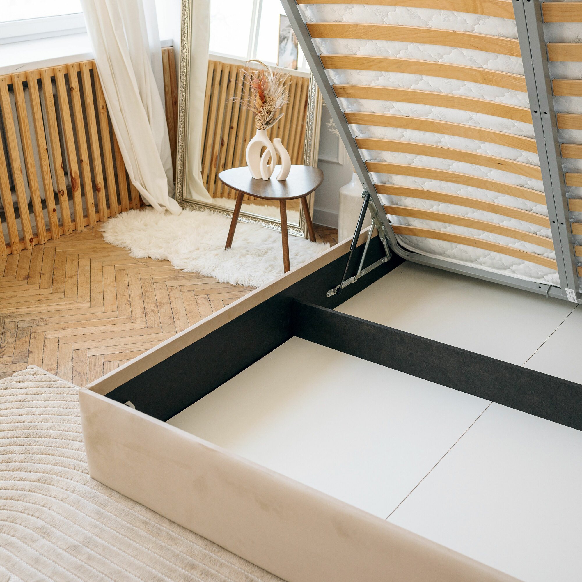 Кровать 140х200 c подъемным механизмом, матрасом и бельевым ящиком Маргарида бежевый
