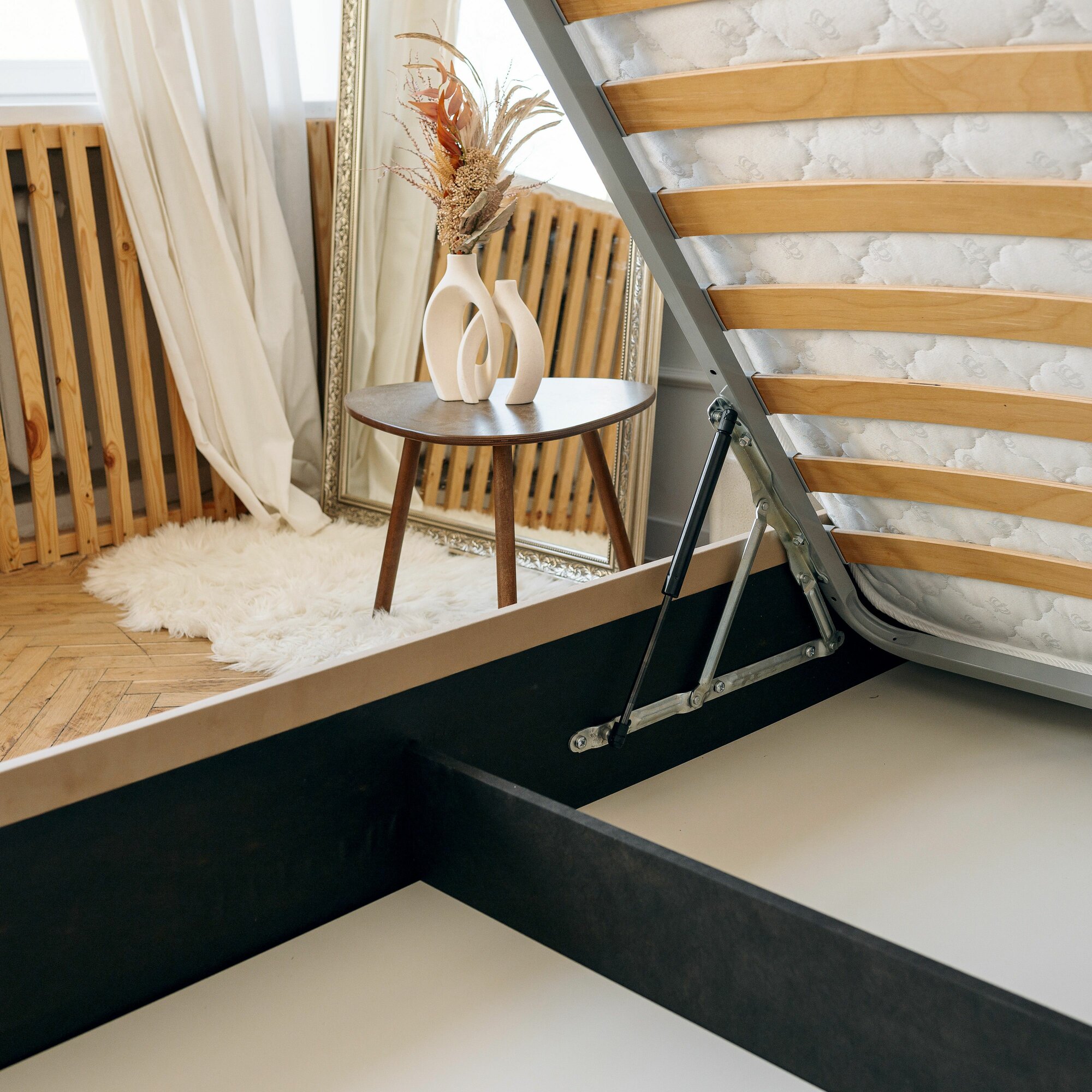 Кровать 140х200 c подъемным механизмом, матрасом и бельевым ящиком Маргарида темно-серый