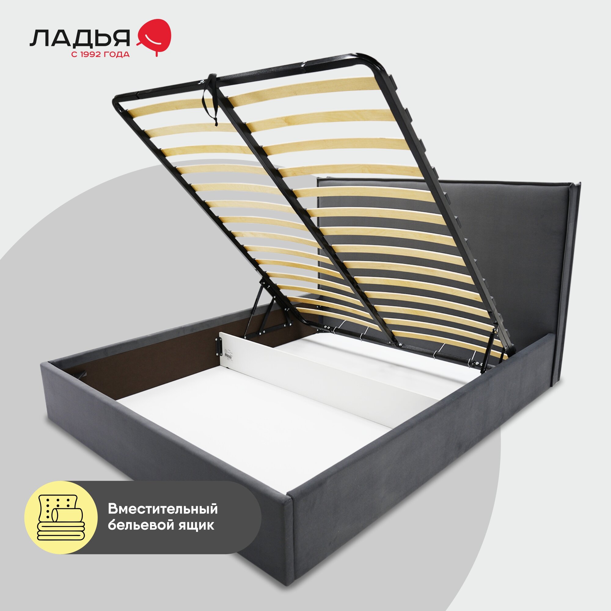 | Особенности | мягкое изголовье, основание под матрас, с изножьем, с подъемным механизмом, с ящиком для белья |