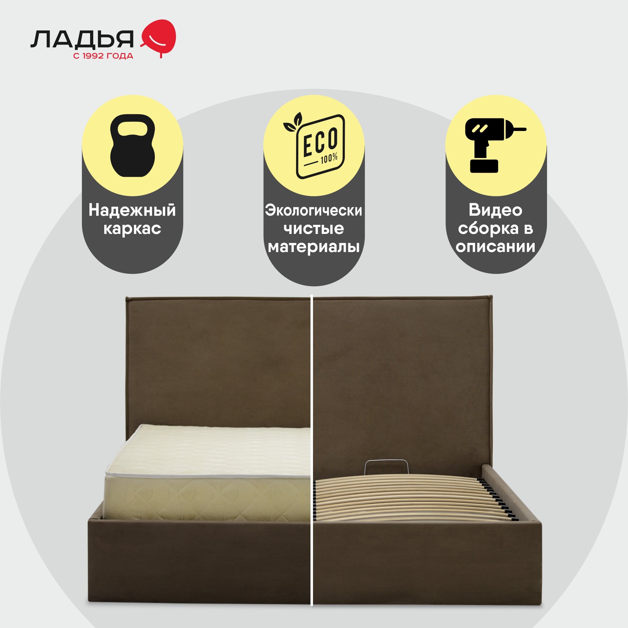 | Особенности | мягкое изголовье, основание под матрас, с изножьем, с подъемным механизмом, с ящиком для белья |