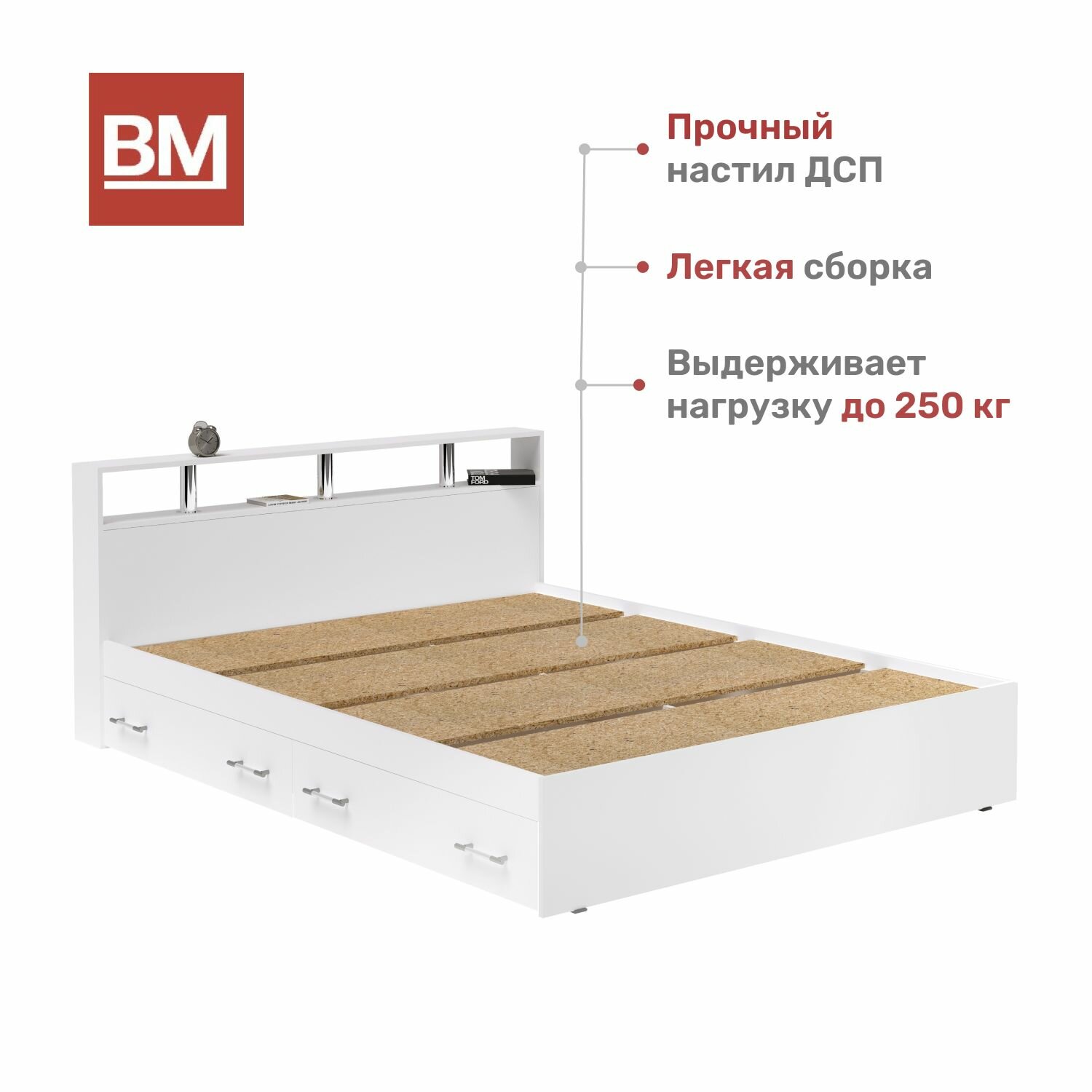 Кровать двуспальная арина 160х200, Белый с ящиками интересное: