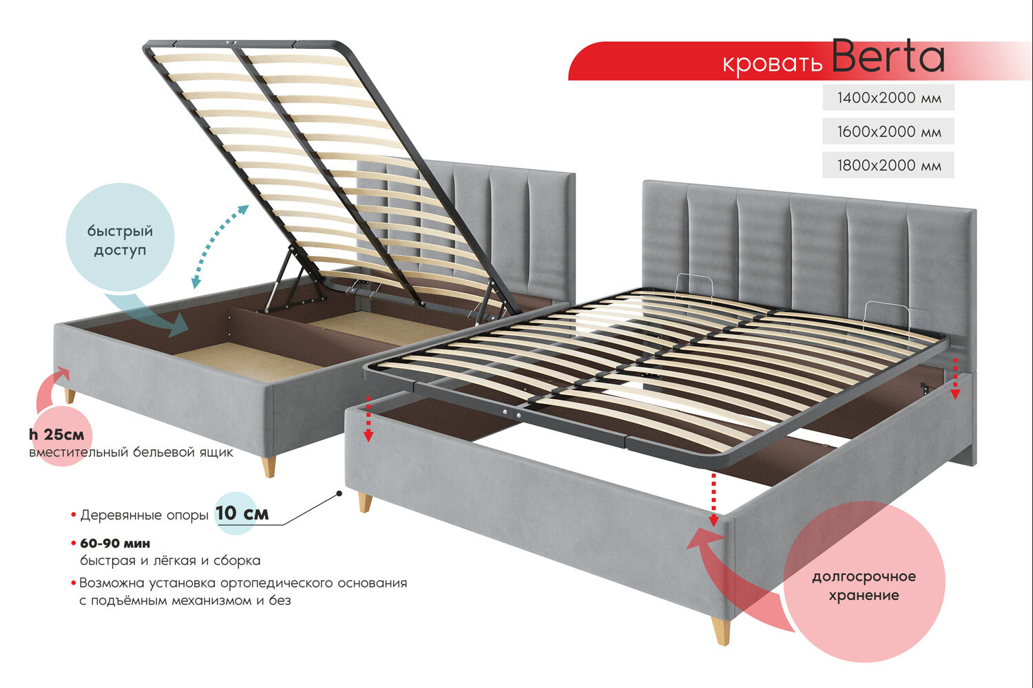 | Особенности | мягкое изголовье, основание под матрас |