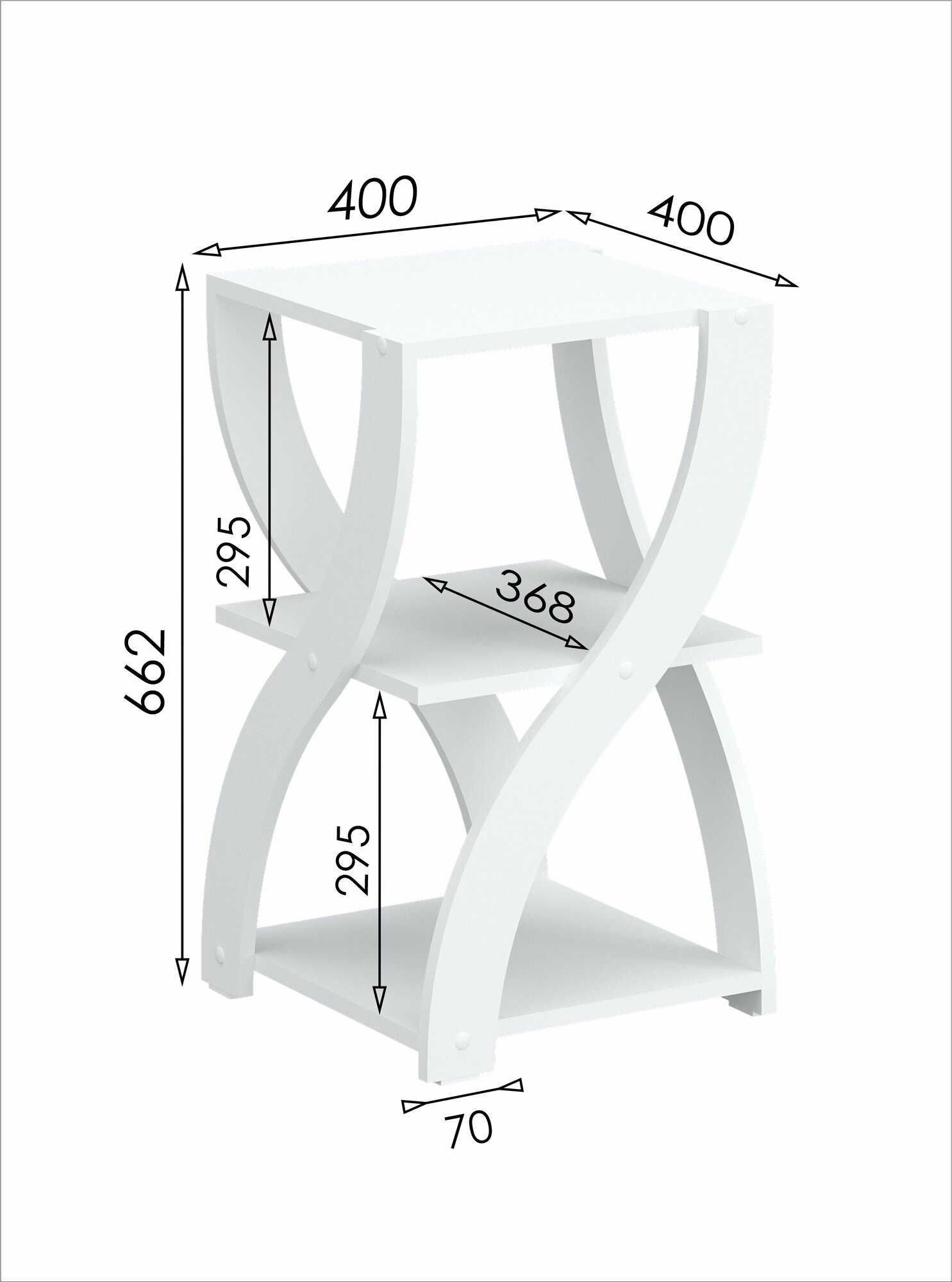 Купить Стеллаж №24 стол косметический кофейный журнальный с полками ЛДСП 40х40х66.2см белый