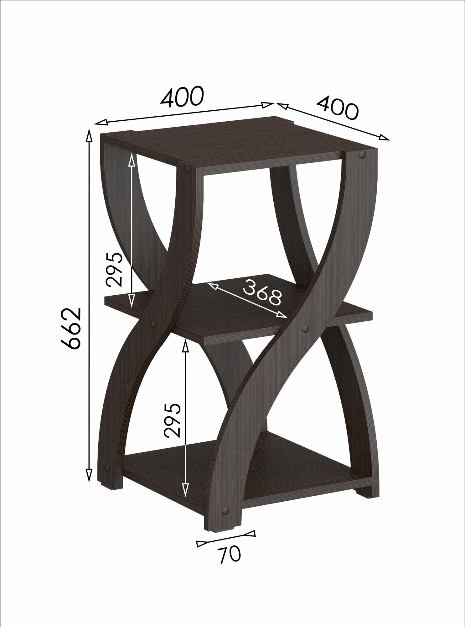 Купить Стеллаж №24 стол косметический кофейный журнальный с полками ЛДСП 40х40х66.2см венге коричневый