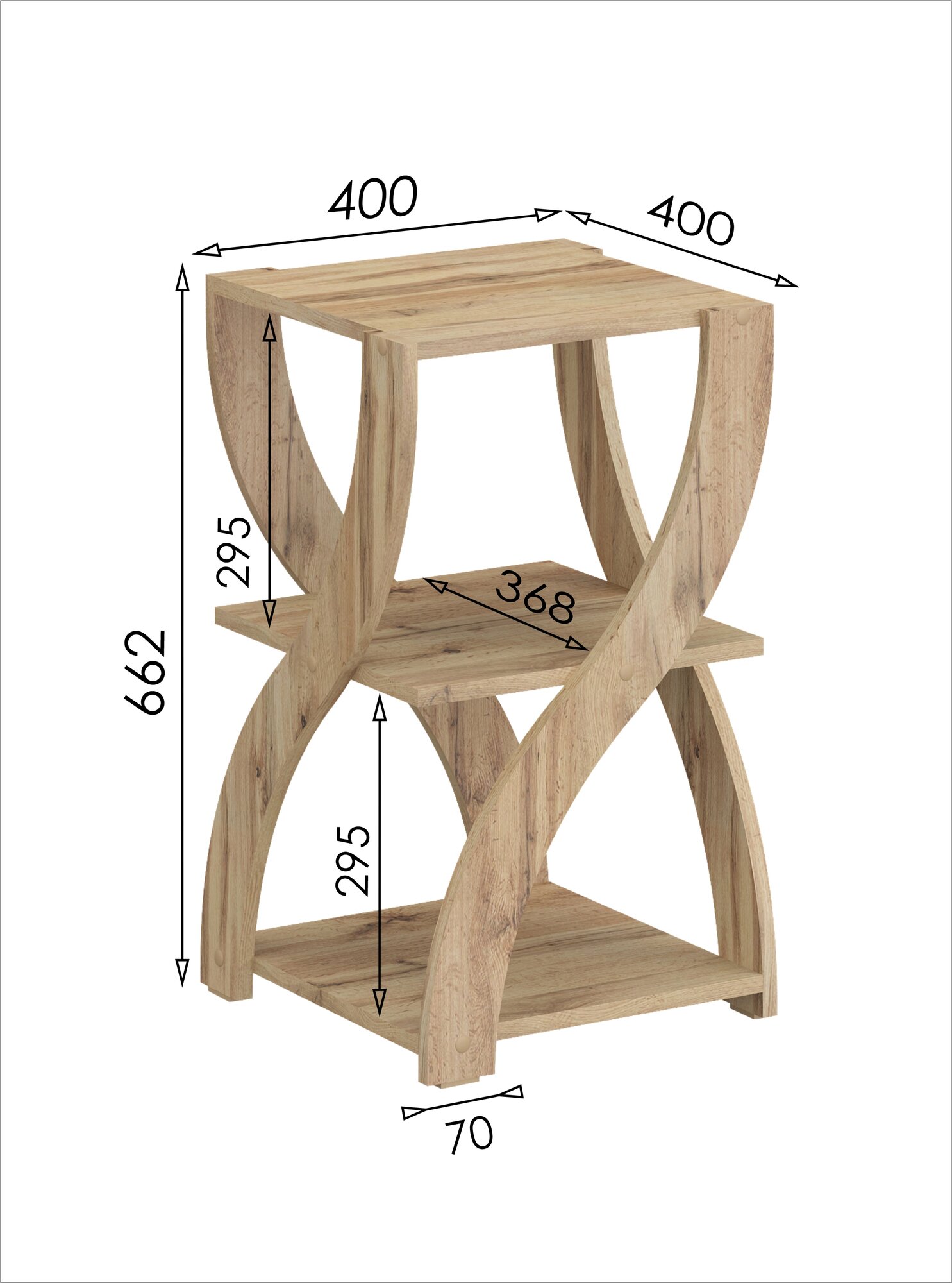 Стеллаж №24 стол косметический кофейный журнальный с полками ЛДСП 40х40х66.2см дуб сонома светлый