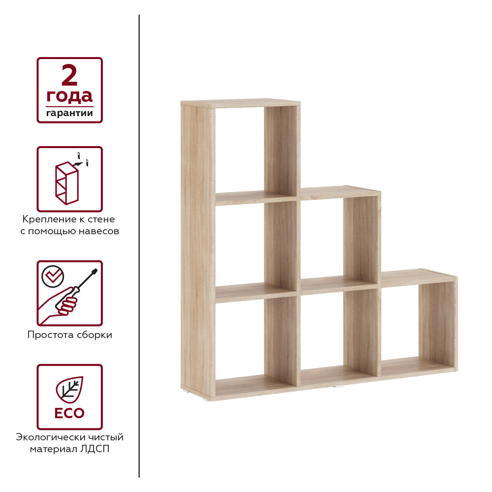 Letta Стеллаж 6 секций Лайт Дуб сонома 1074х720х330