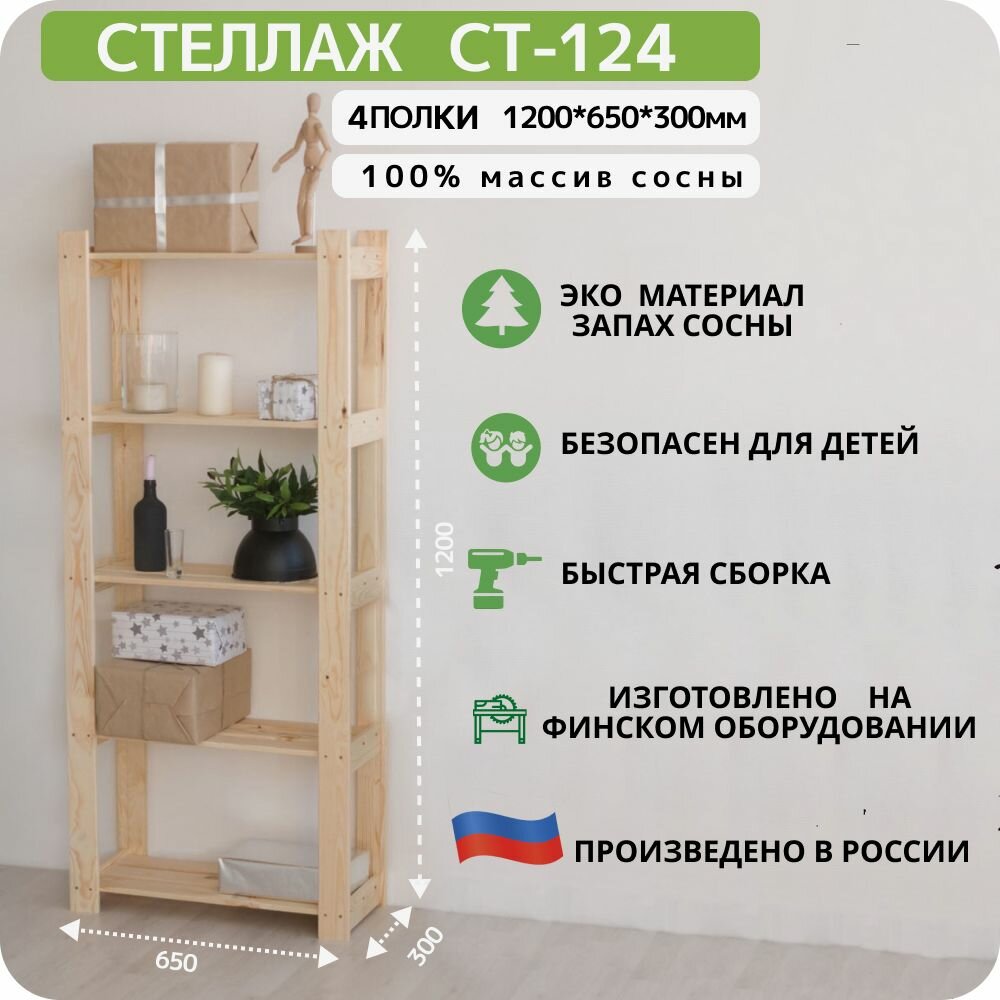 Купить Стеллаж деревянный 120х65х30 см 4 полки. Для дачи ,гаража ,этажерка ,рассады