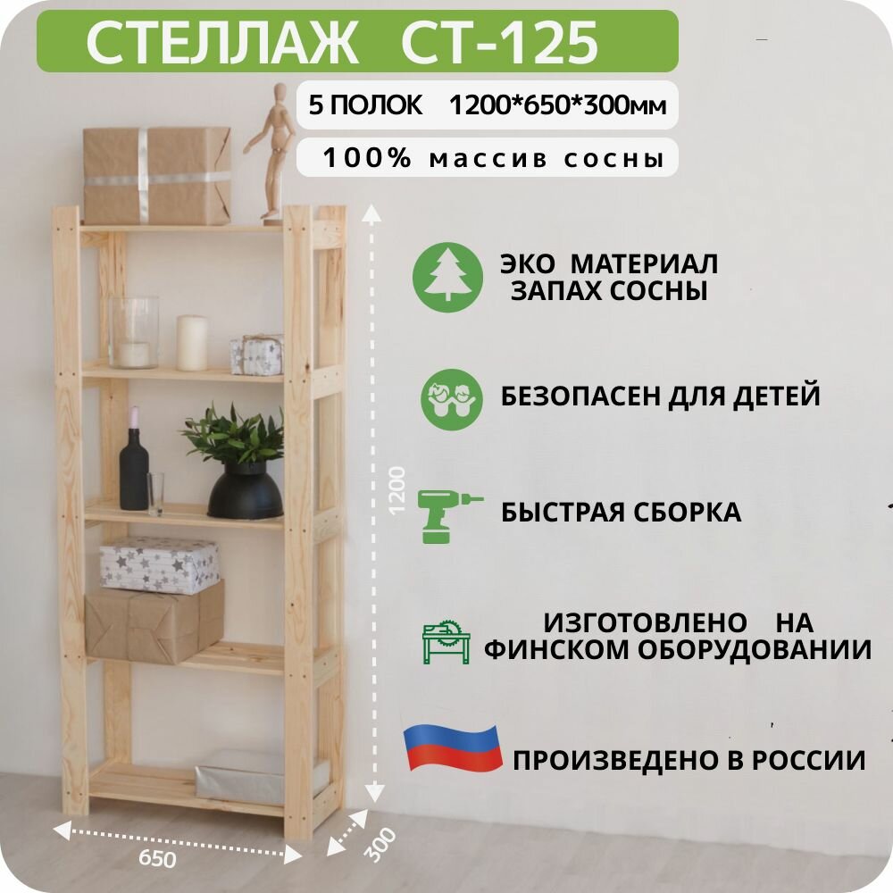 Купить Стеллаж деревянный 120х65х30 см 5 полок. Для рассады дачи гаража этажерка