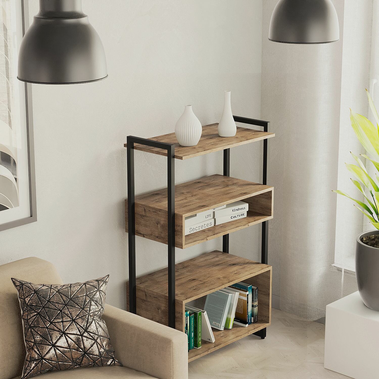 Купить Стеллаж лофт TRIS Smart (73х39х120см) Дуб Веллингтон