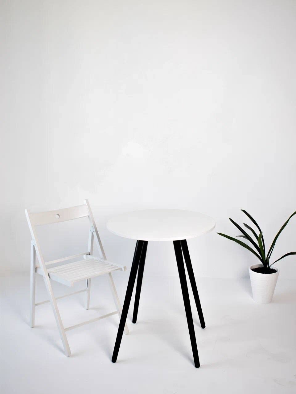 Стол кухонный лофт обеденный круглый, белый, подстолье - ножки дерево "Белый", ЛДСП цвет "Белый" 60х75 см