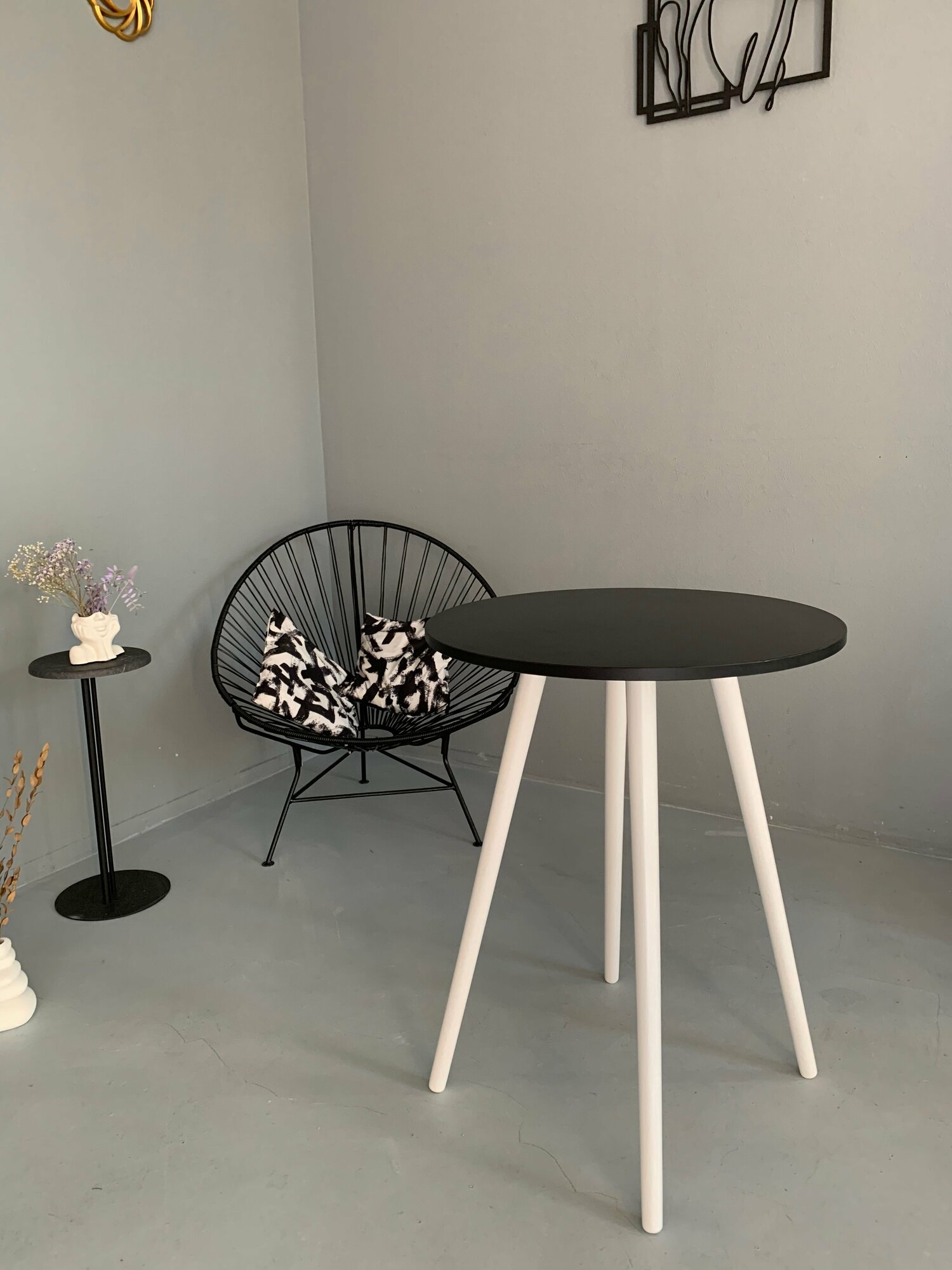 Стол кухонный лофт обеденный круглый, белый, подстолье - ножки дерево "Черный", ЛДСП цвет "Белый" 60х75 см