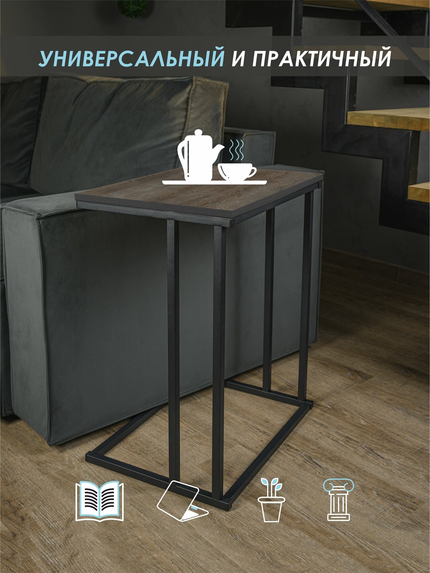 Столик приставной НЭО черный матовый/сосна санторини интересное: