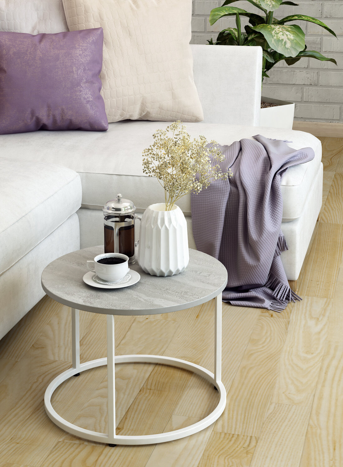 Журнальный стол REGENT style "Соло", круглый, белый, металл, ЛДСП