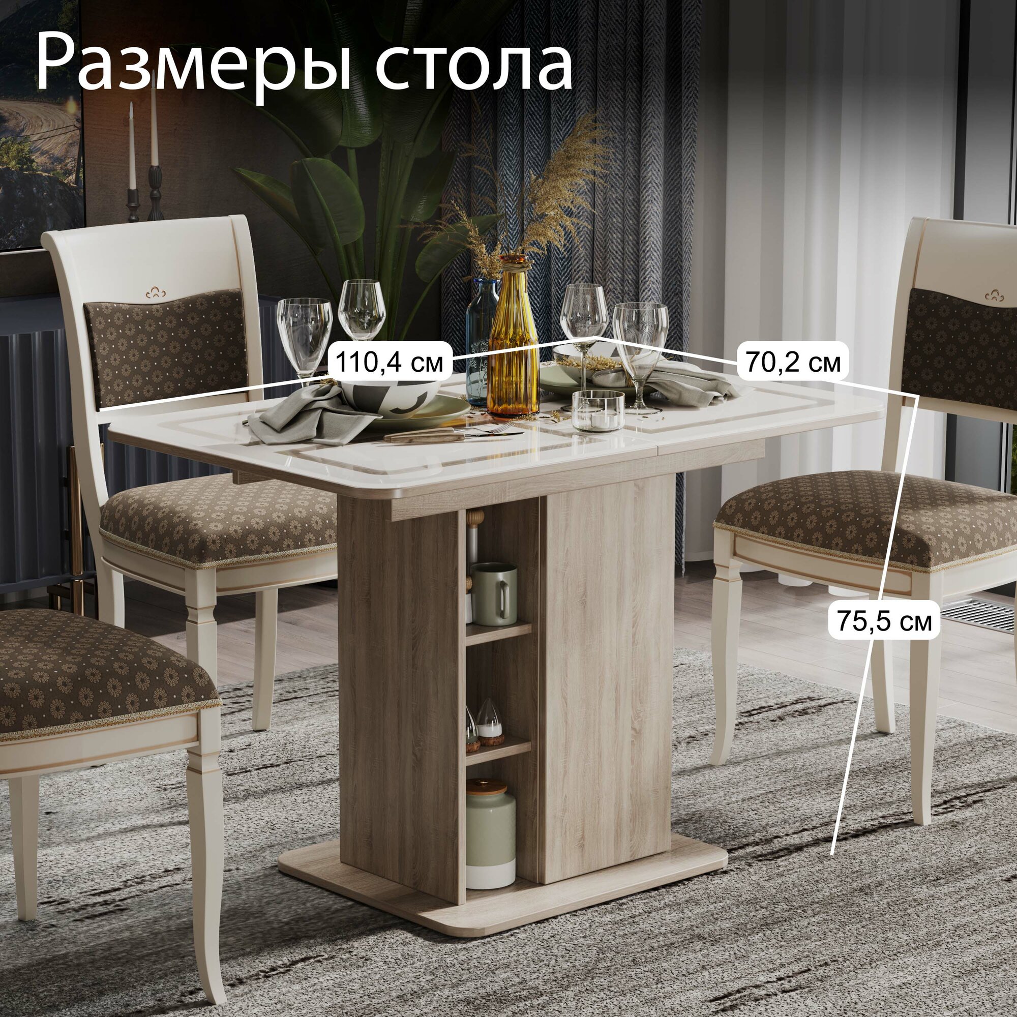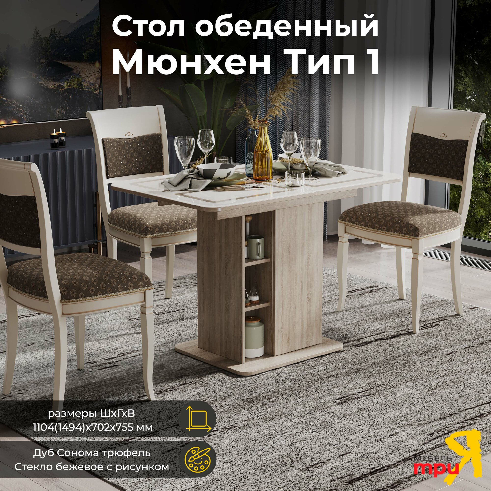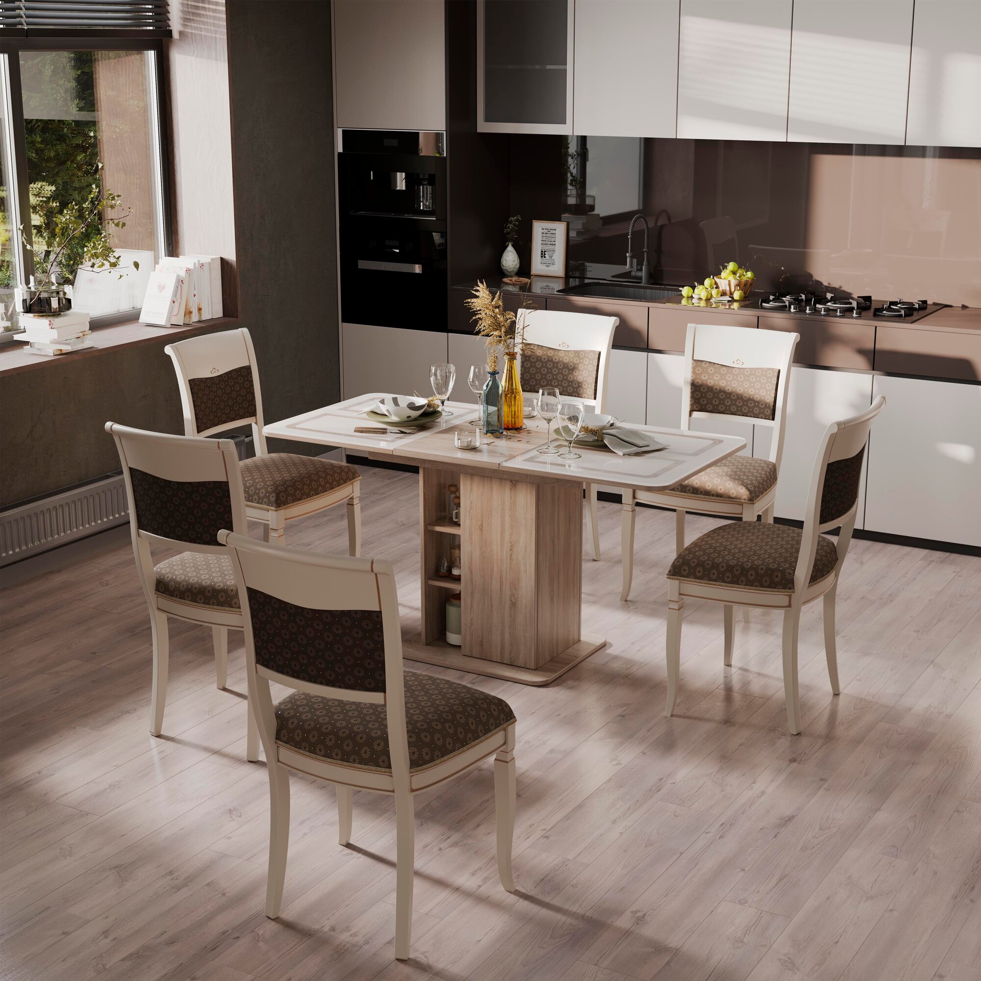 Стол обеденный раздвижной с полками бежевый, Мюнхен интересное:
