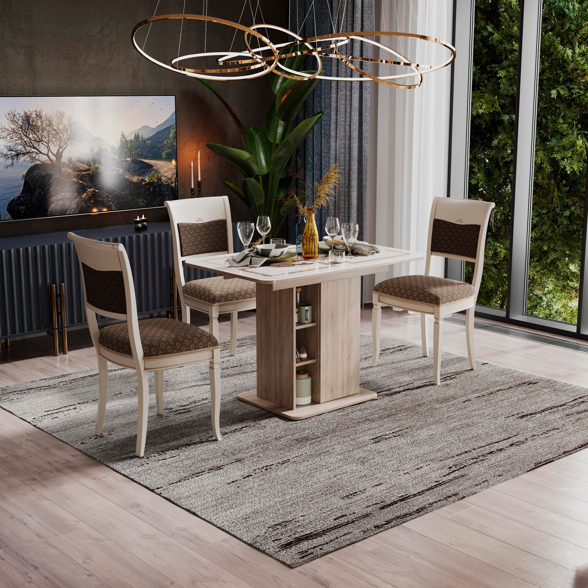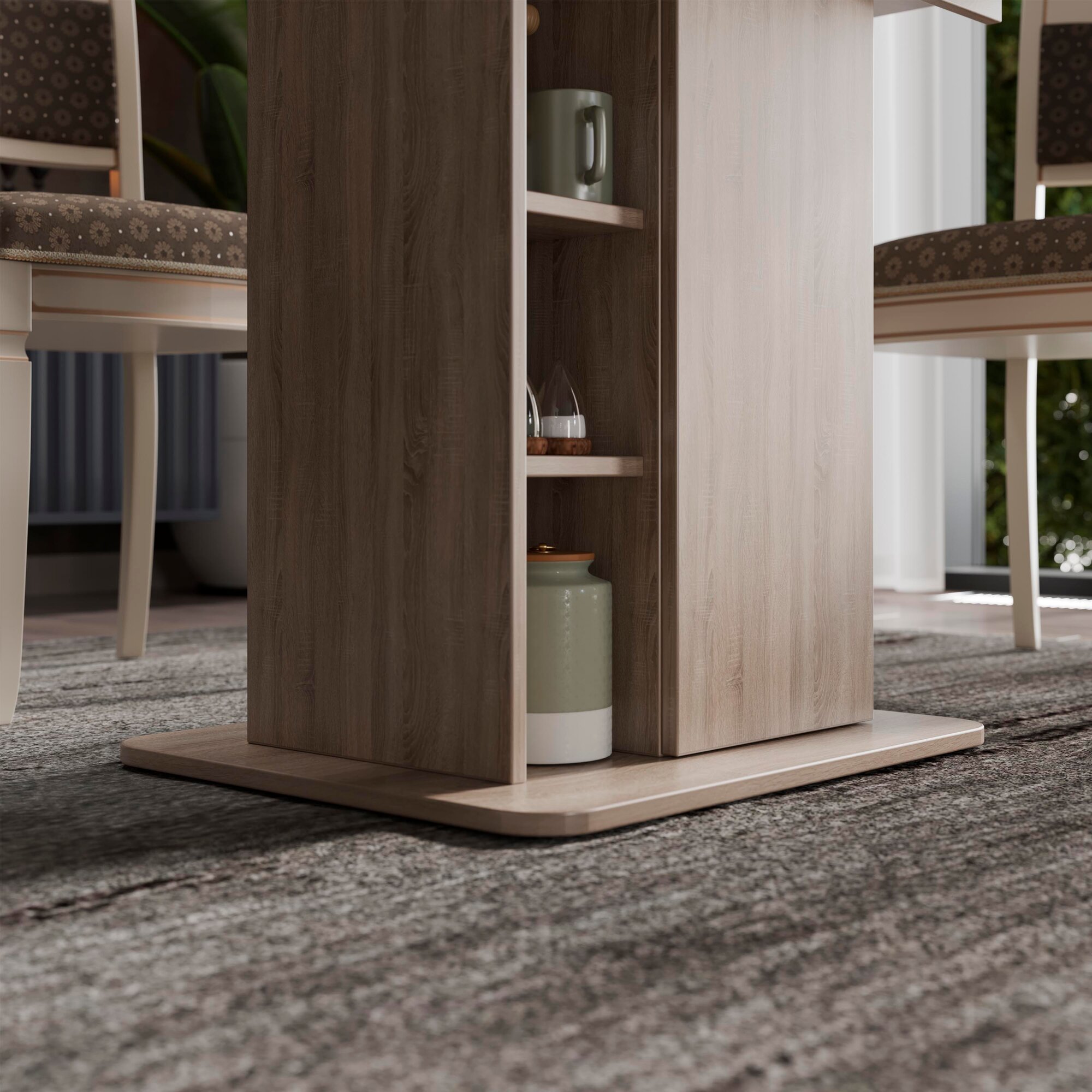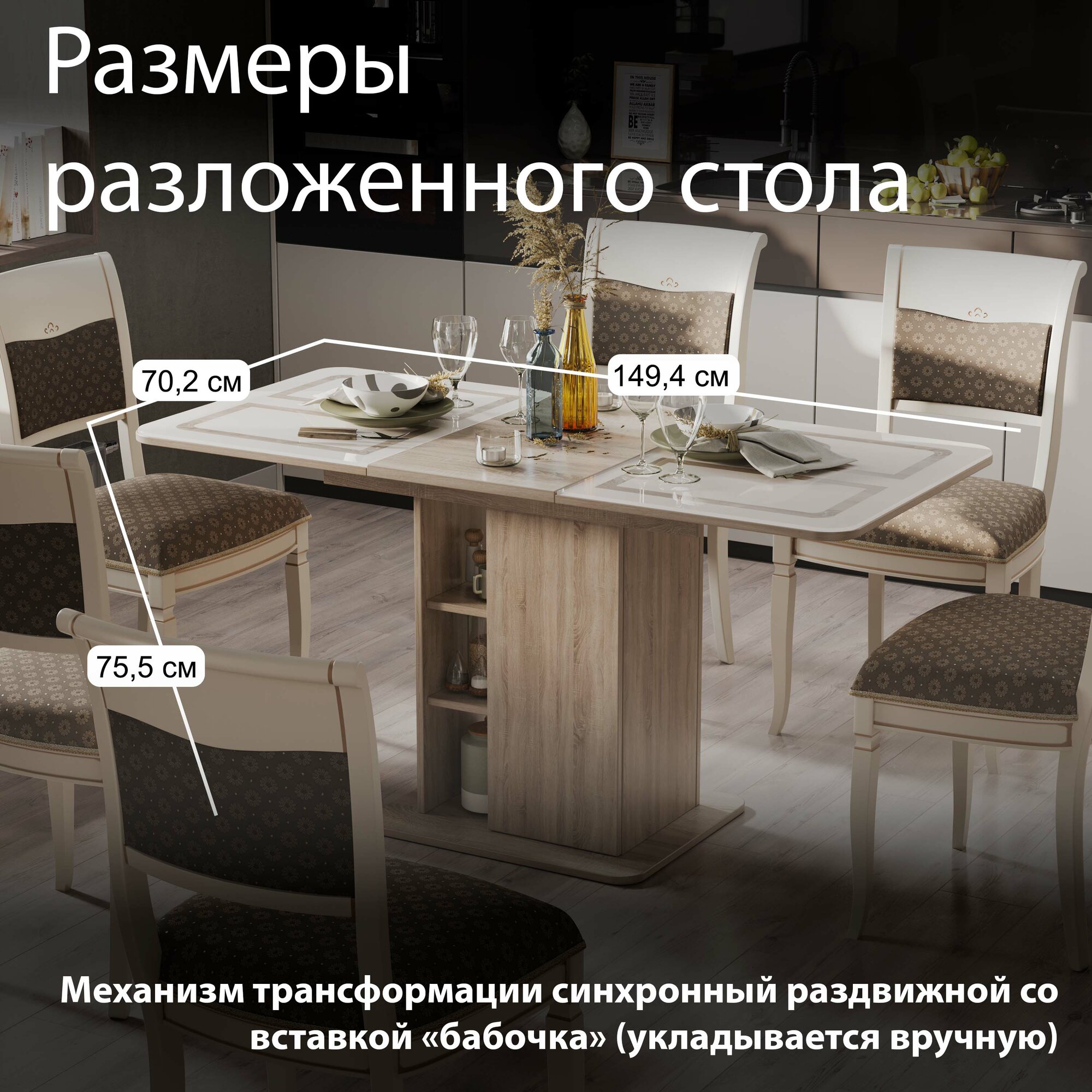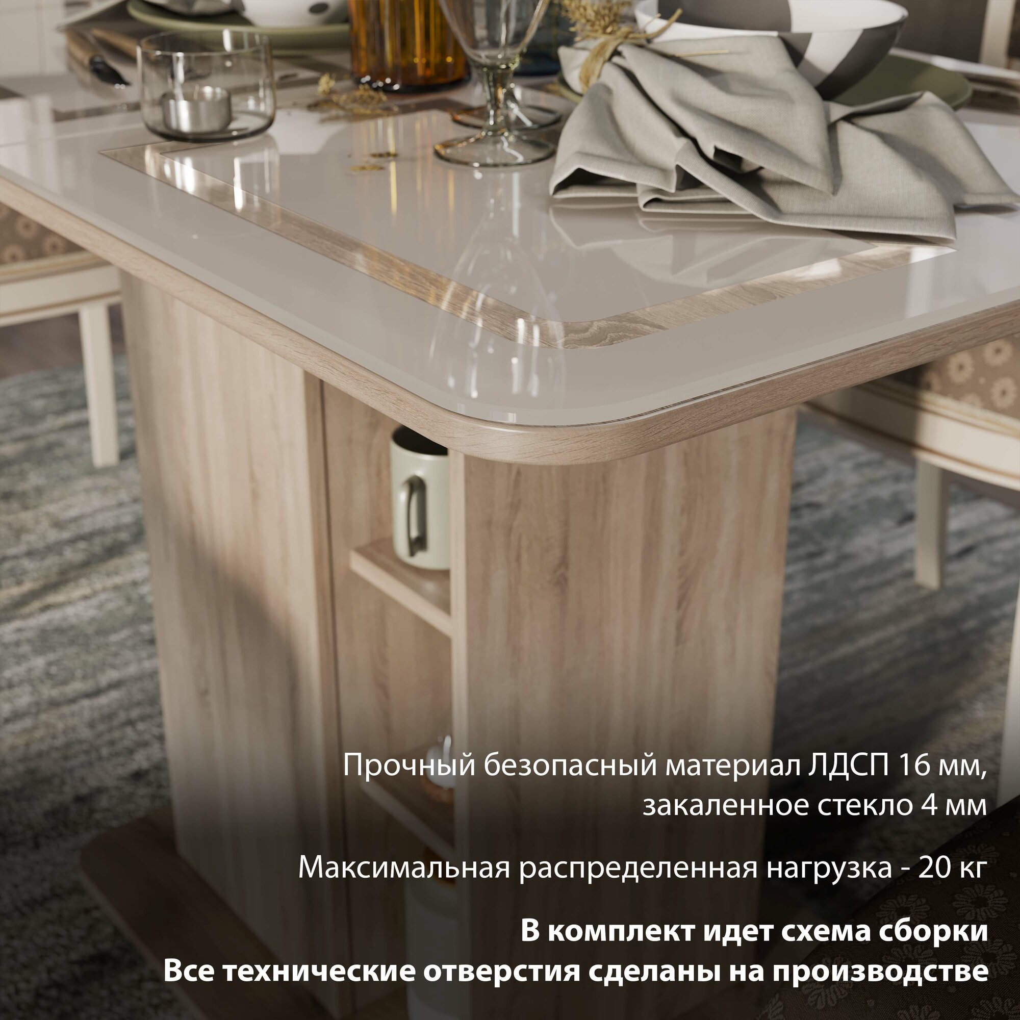 Стол обеденный раздвижной с полками бежевый, Мюнхен интересное: