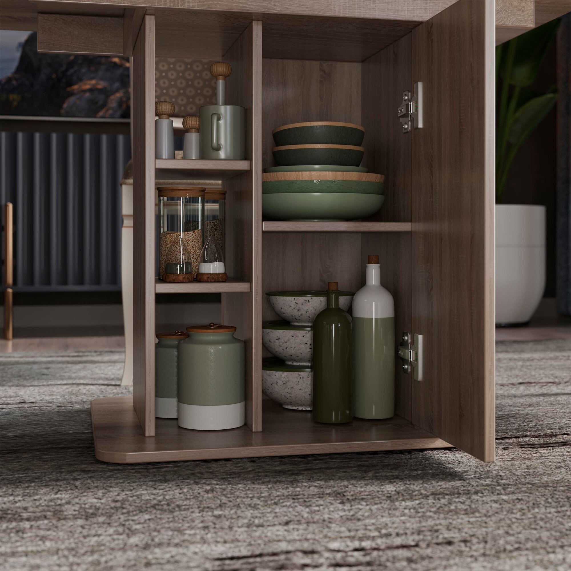 Купить Стол обеденный раздвижной с полками бежевый, Мюнхен