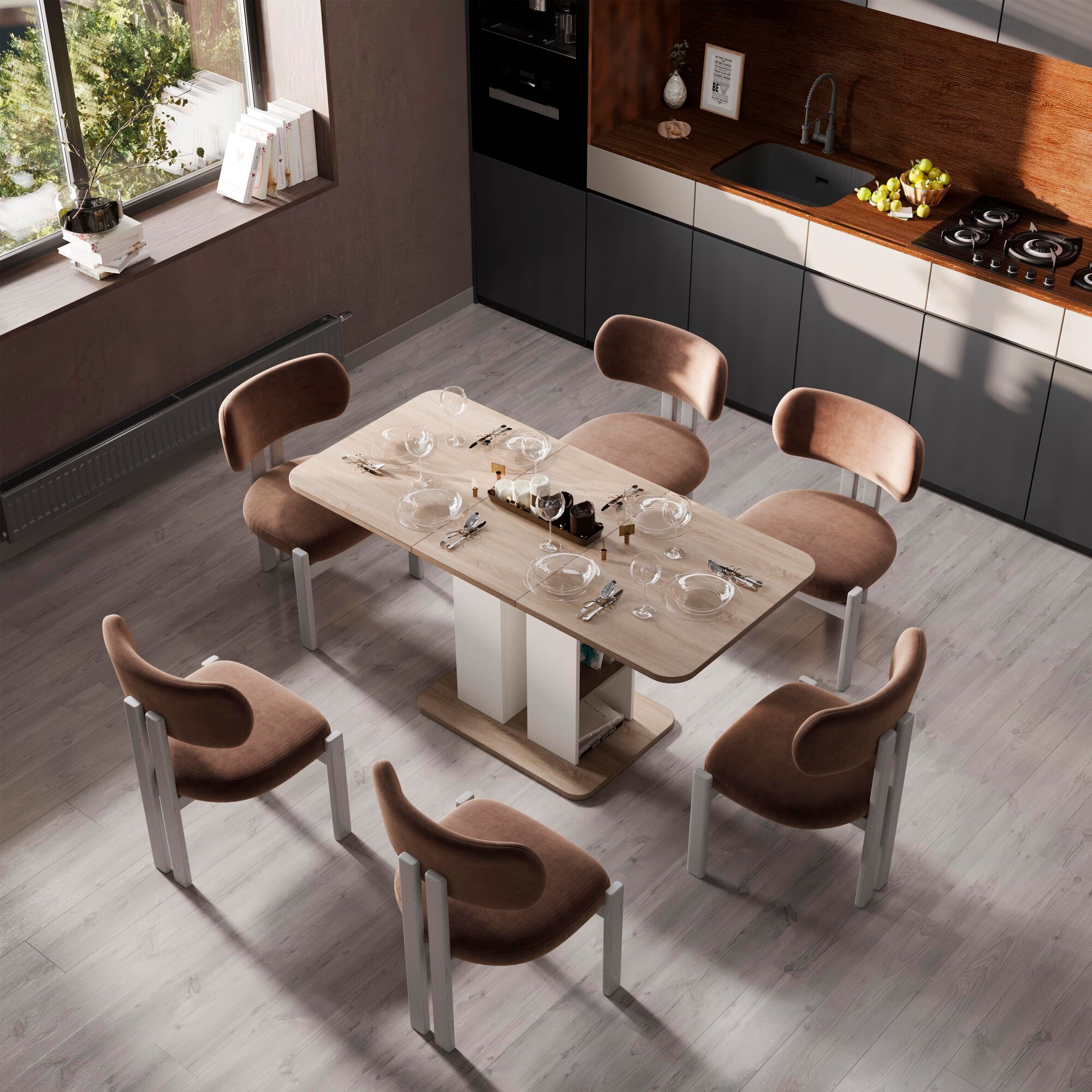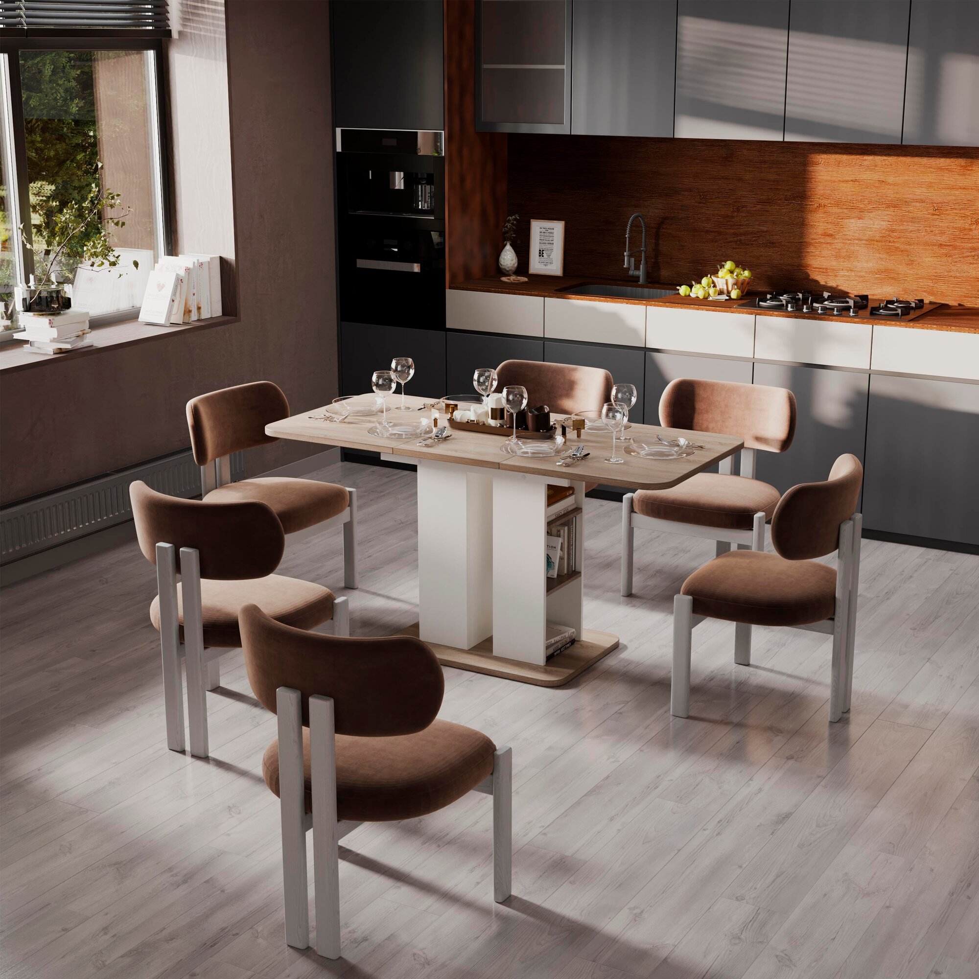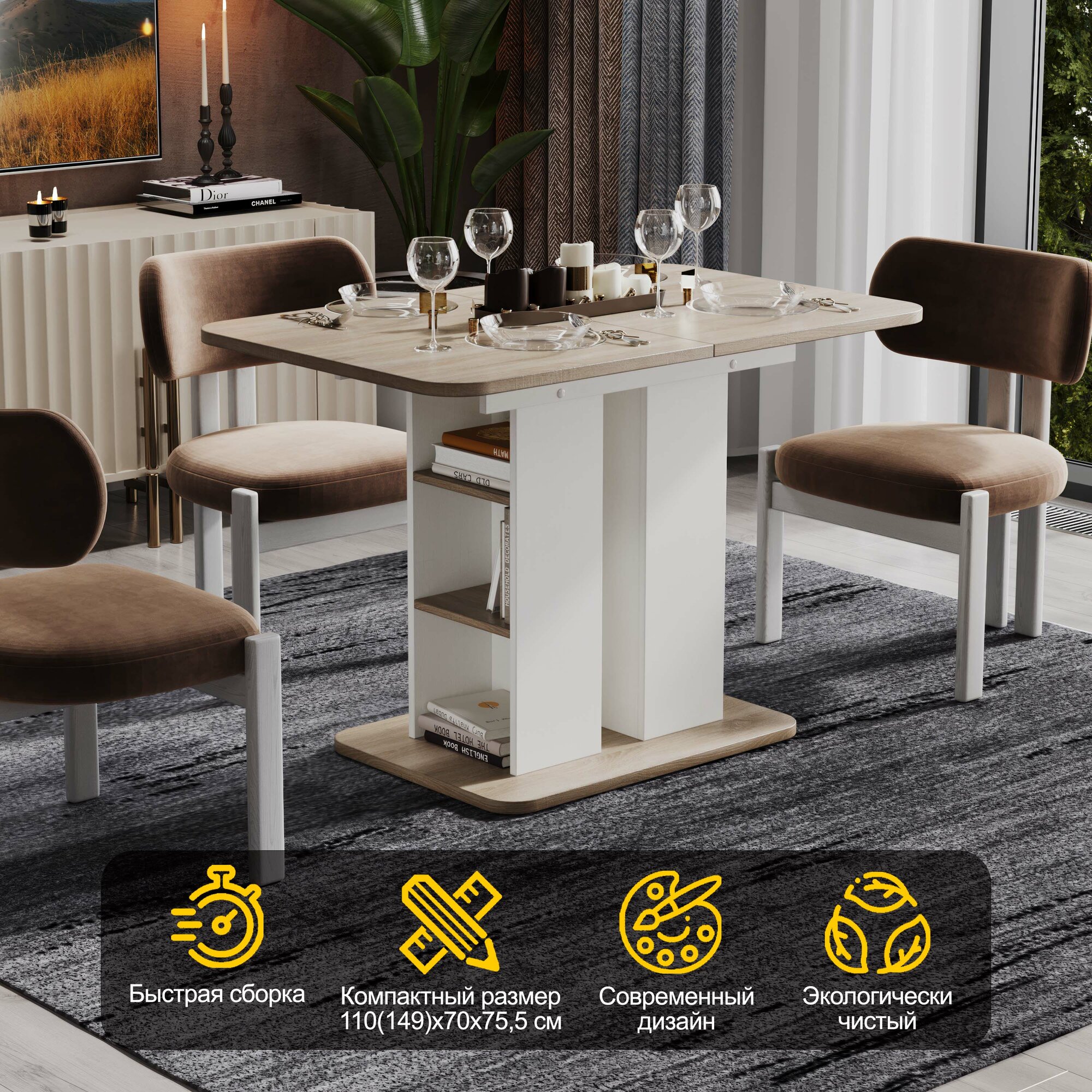 Стол обеденный раздвижной с полками белый бежевый, Мюнхен интересное: