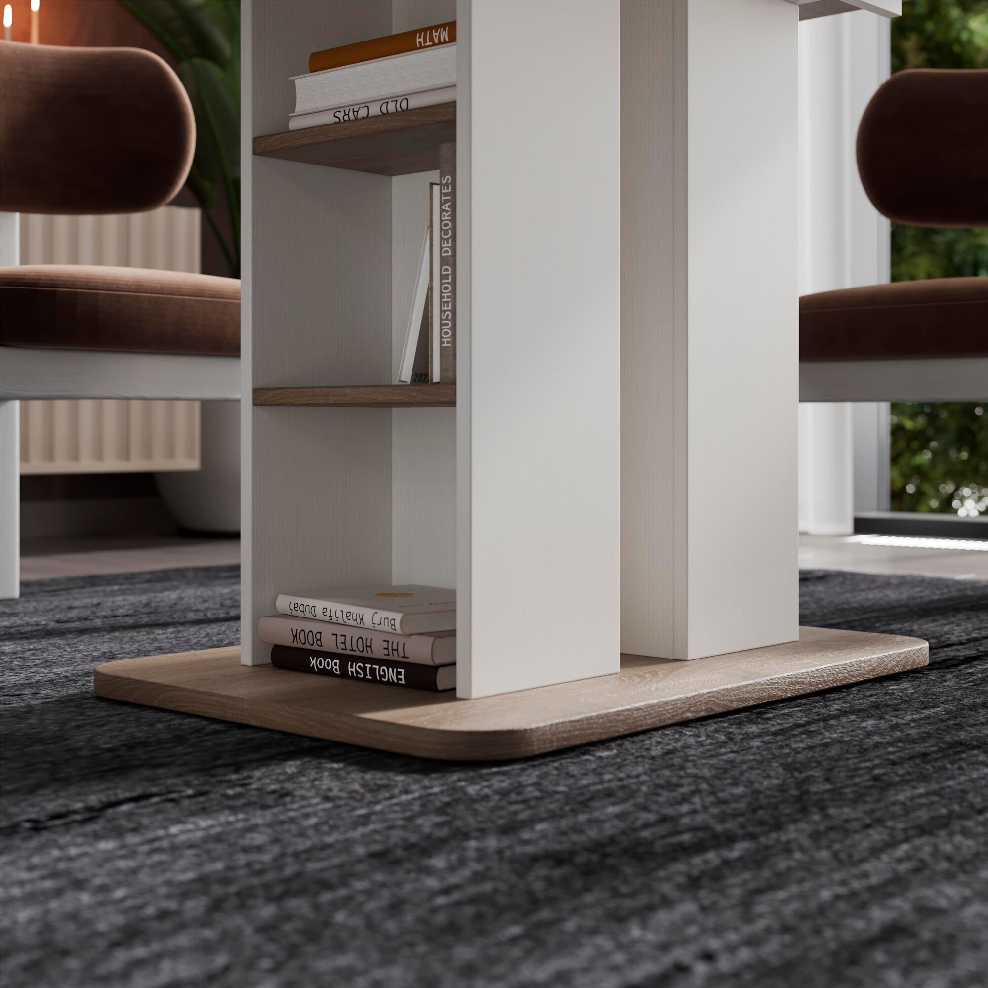 Купить Стол обеденный раздвижной с полками белый бежевый, Мюнхен