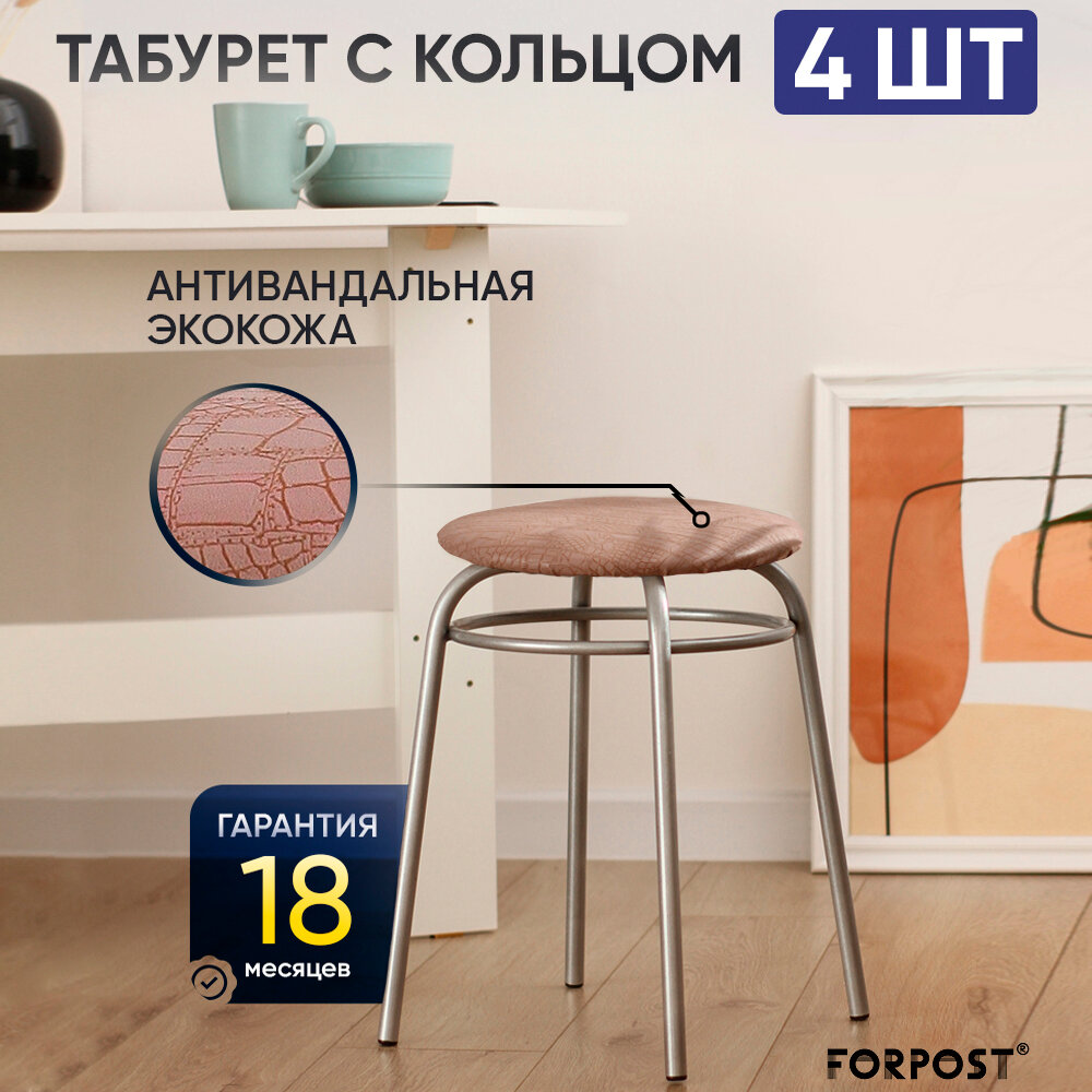 Табурет для кухни круглый с кольцом, 4 штуки капучино рептилия интересное: