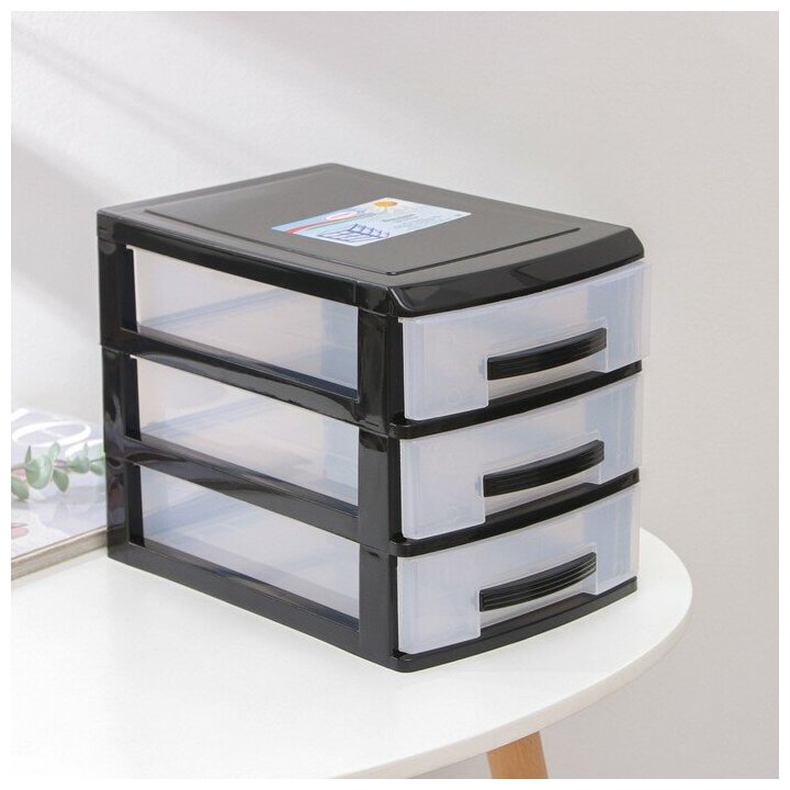 Русспласт мини-комод 3 яруса, цвет: черный/прозрачный интересное: