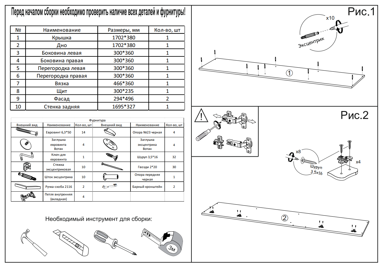 | Комплектация | в комплект входит схема сборки и вся необходимая фурнитура |