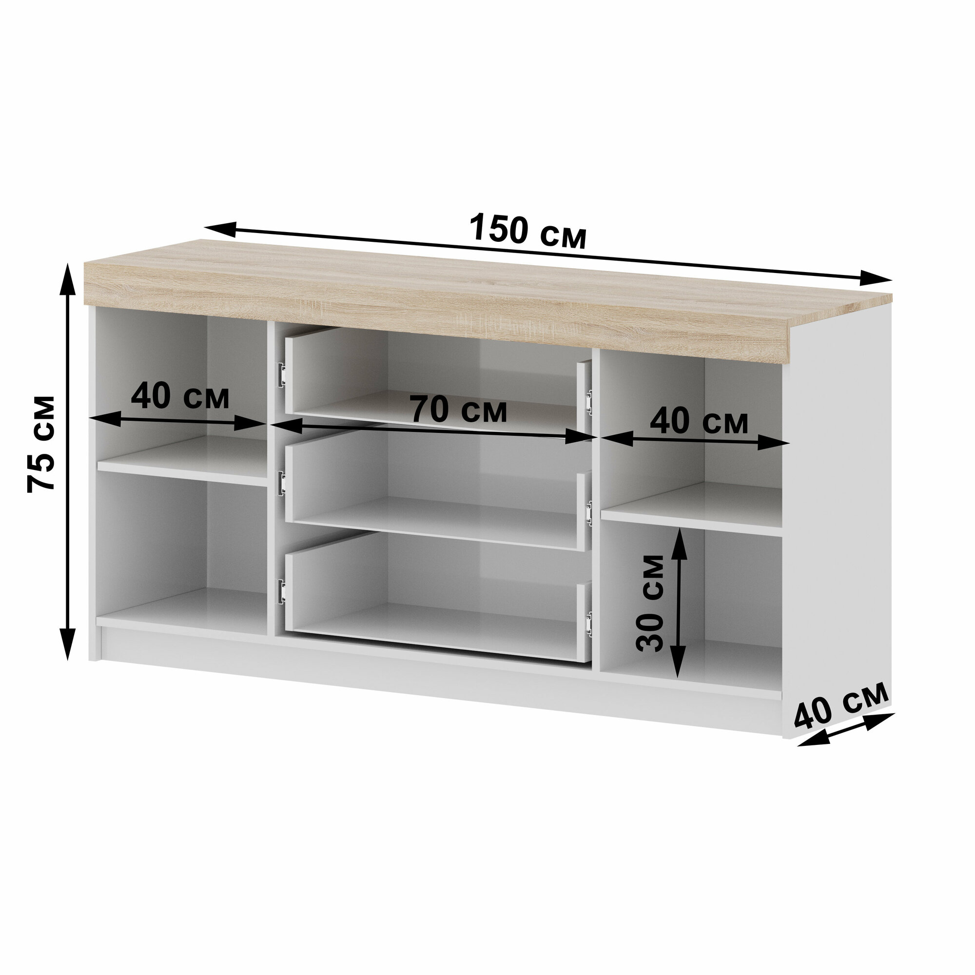 Комод "Модерн" №1-3 ящика (2 двери), В*Ш*Г (см) 75х150х40, ЛДСП, белый / дуб сонома интересное: