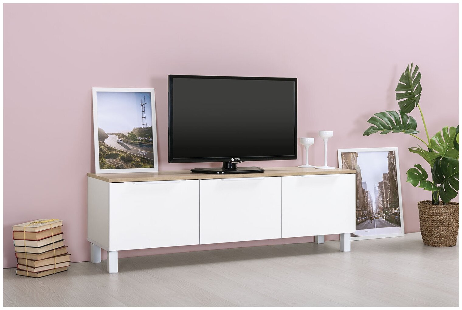Тумба под ТВ 13.267.01, цвет белый шагрень/дуб сонома, ШхГхВ 138,4х34,9х43,8 см, универсальная сборка