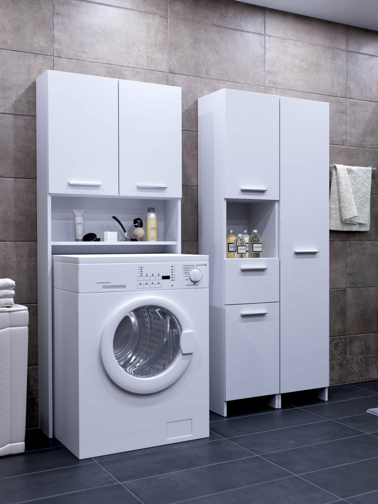 Стеллаж для ванной белый с дверцами и полками, стеллаж-надстройка над стиральной машинкой или унитазом СВ-914 Электра, 660х230х1850