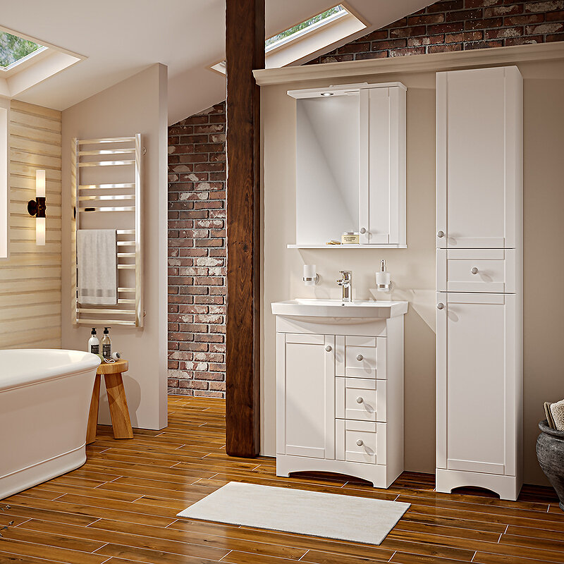 Шкаф в ванную с зеркалом Капри 55, белый, универсальный
