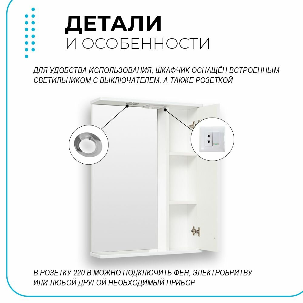 СохранитьШкаф в ванную с зеркалом Мерида 58, с подсветкой, правый, белый интересное: