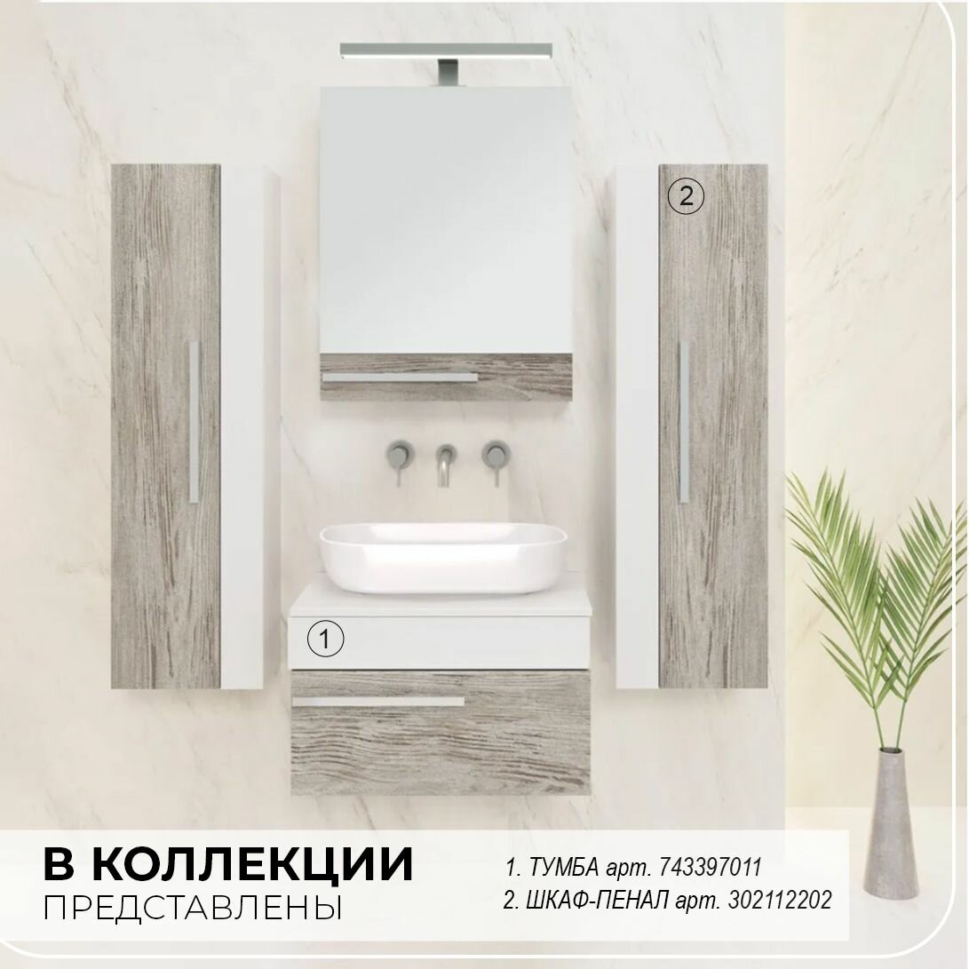 Купить Шкаф в ванную с зеркалом Вудлайн 60, правый, скандинавский дуб-белый