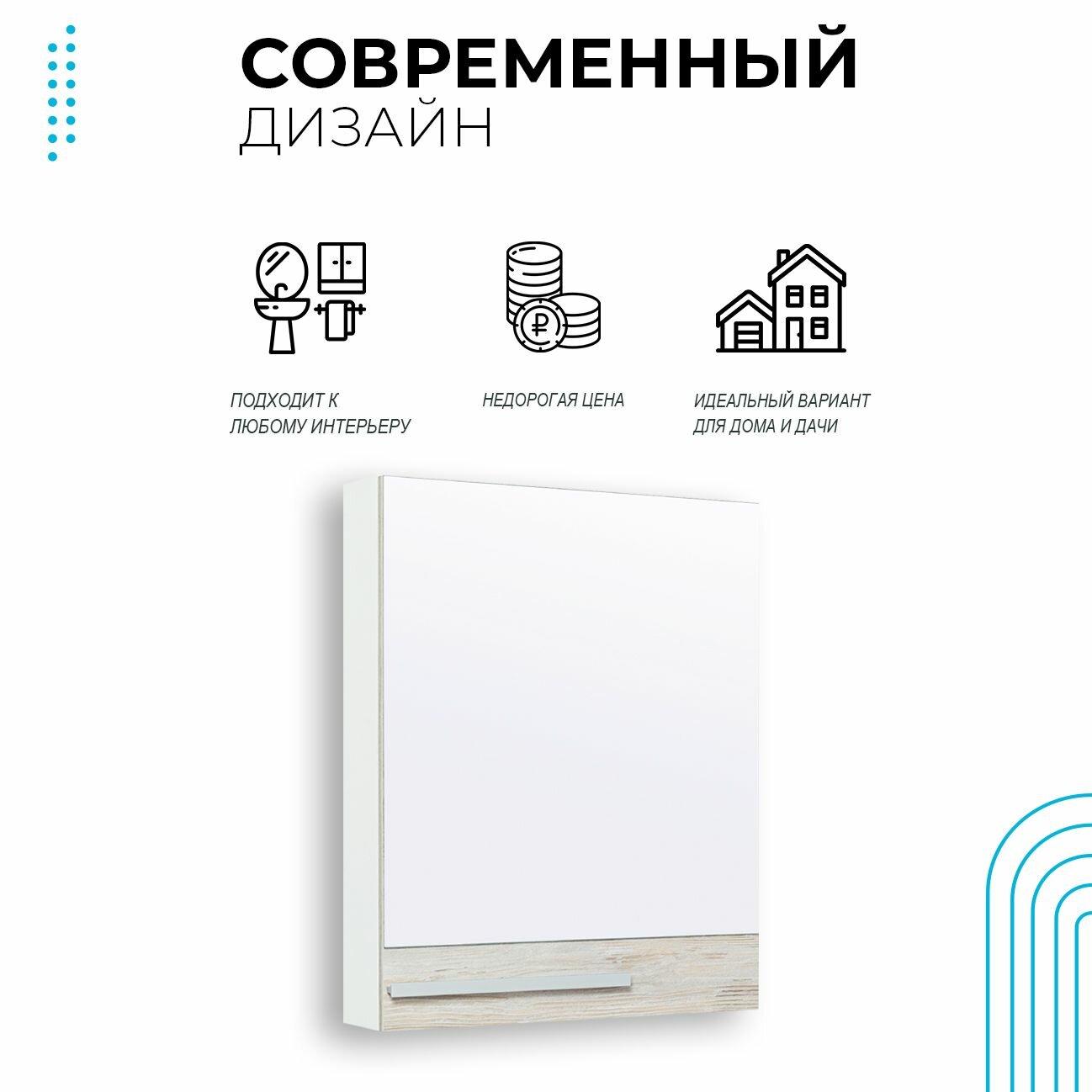 Зеркальный шкаф Runo Вудлайн 60х75 правый, дуб скандинавский (00-00001006)