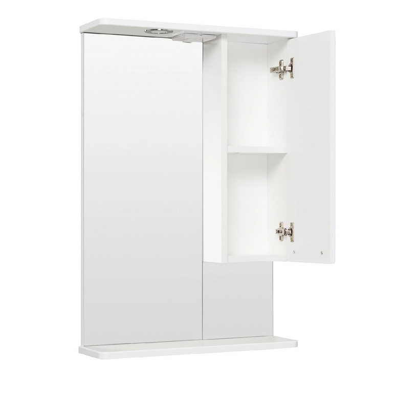 Шкаф в ванную с зеркалом Мерида 58, с подсветкой, правый, белый