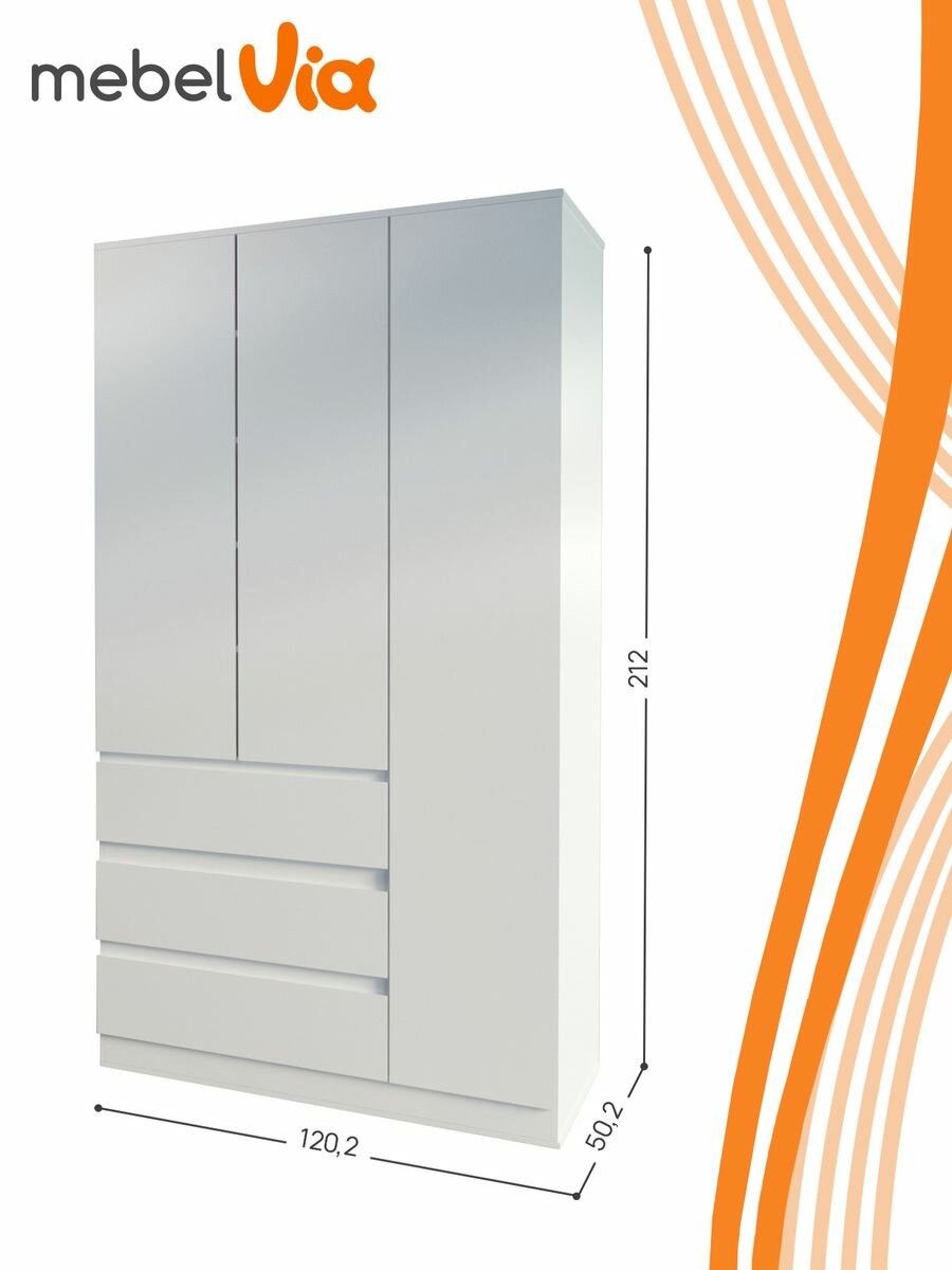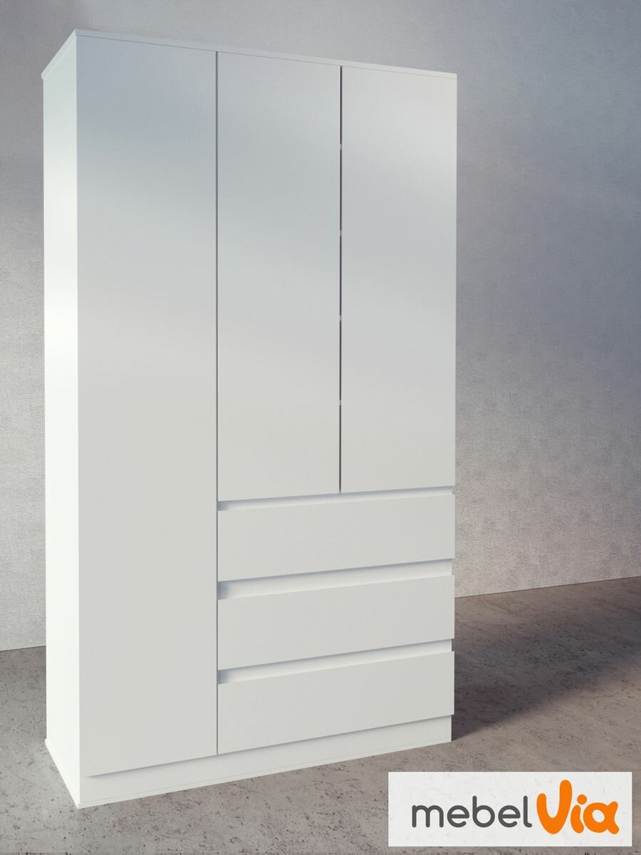Шкаф 3-х дверный с ящиками Сомеро, белый ЛДСП, распашные дверцы, MebelVia