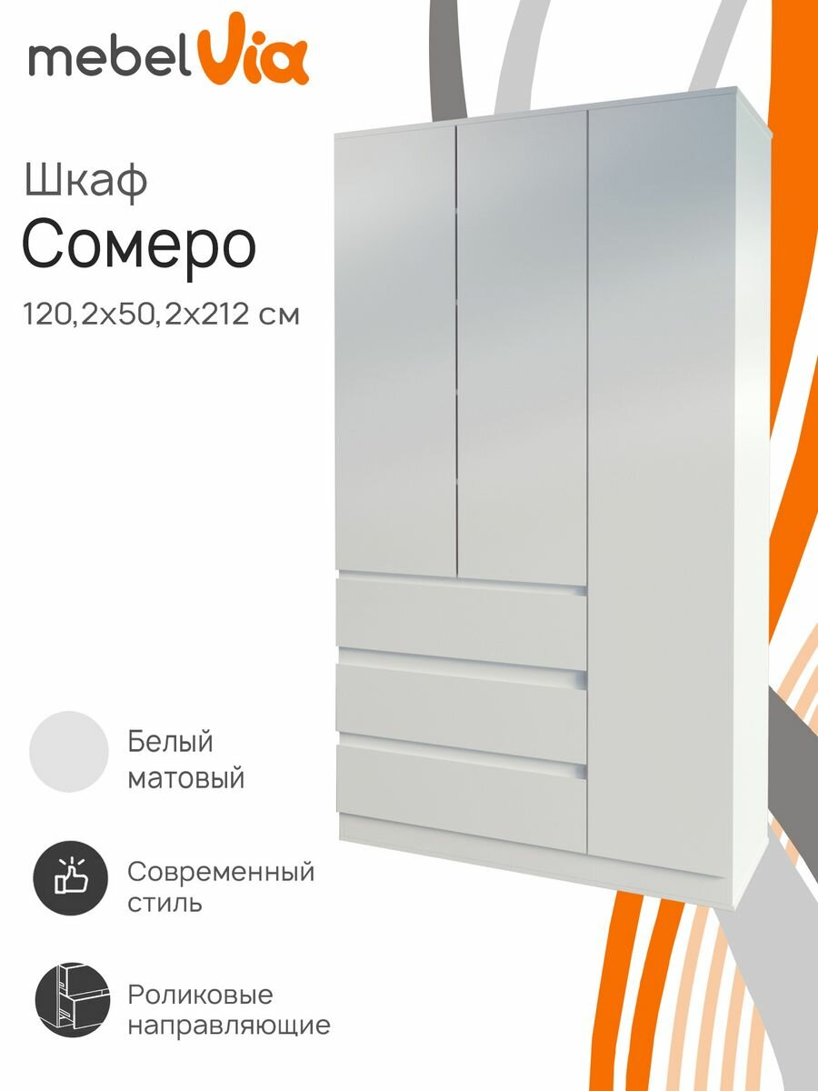 Шкаф 3-х дверный с ящиками Сомеро, белый интересное: