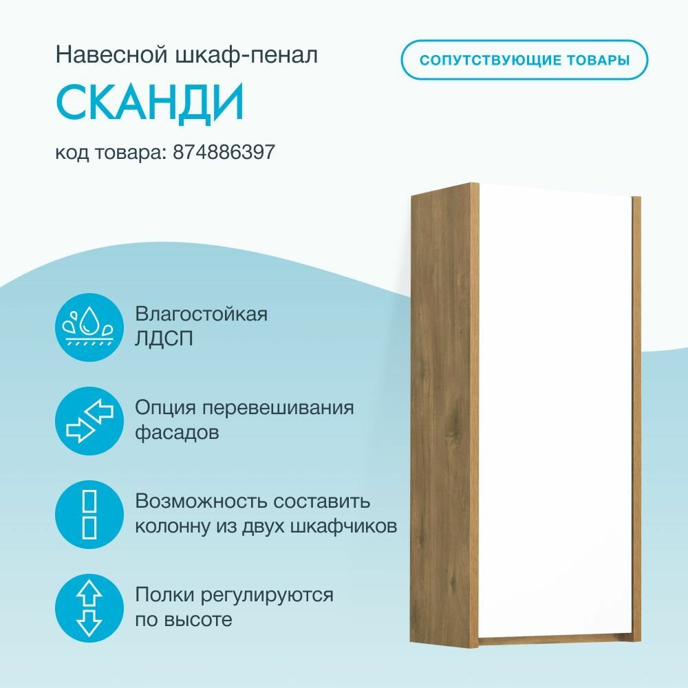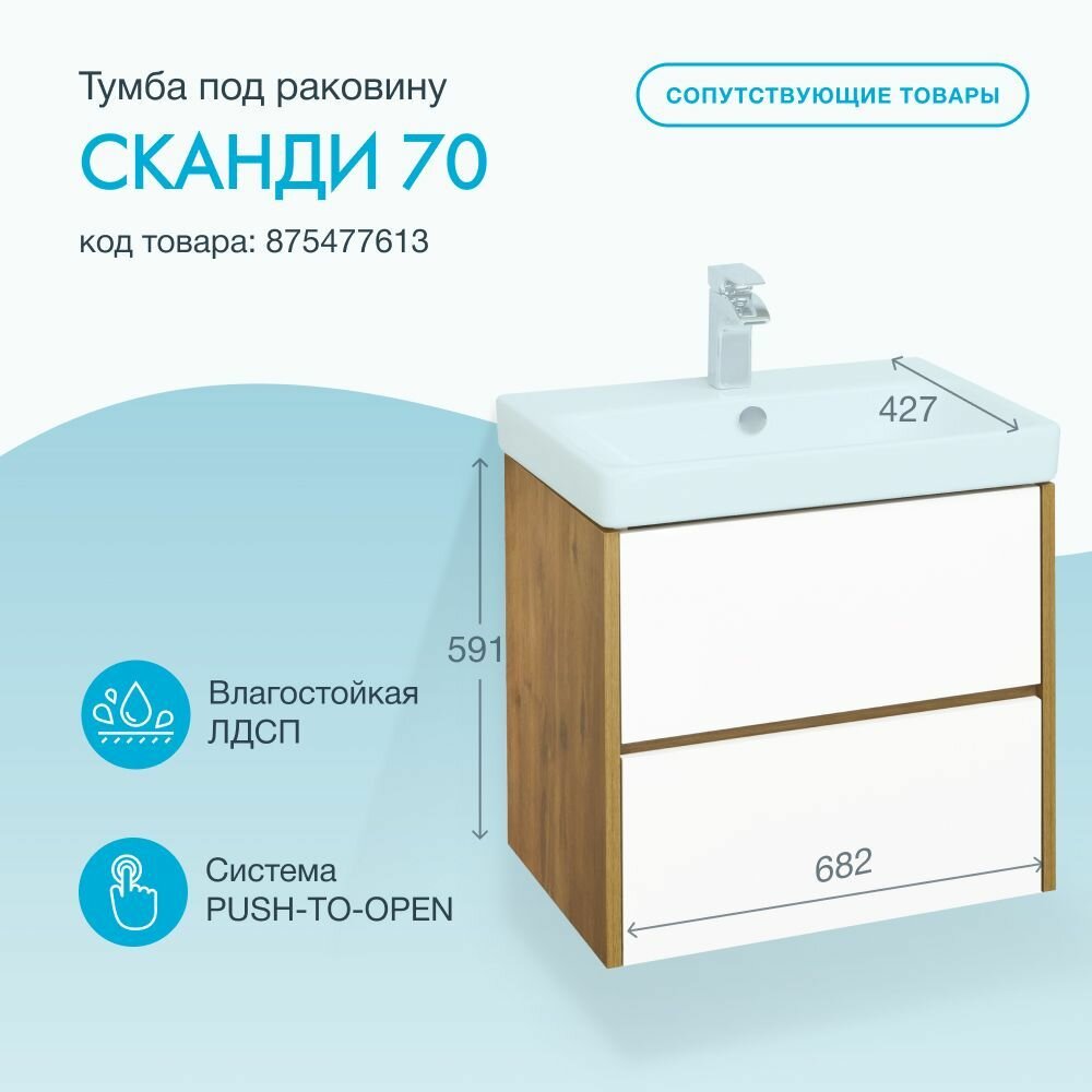 СохранитьЗеркальный шкаф AQUATON Сканди 70 белый, дуб рустикальный 1A252202SDZ90 интересное: