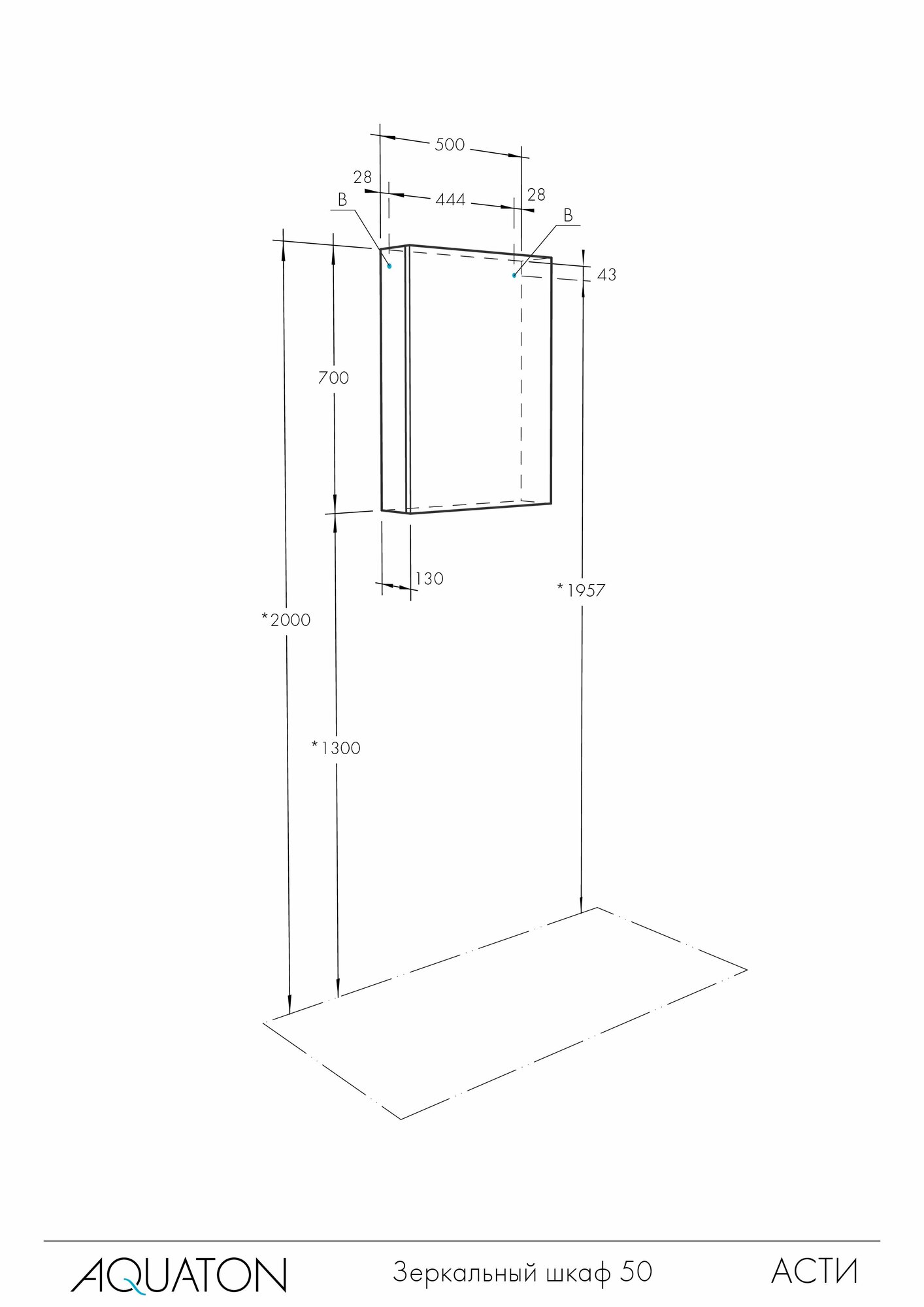 Шкаф с зеркалом в ванную правый AQUATON Асти 50 1A263302AX010